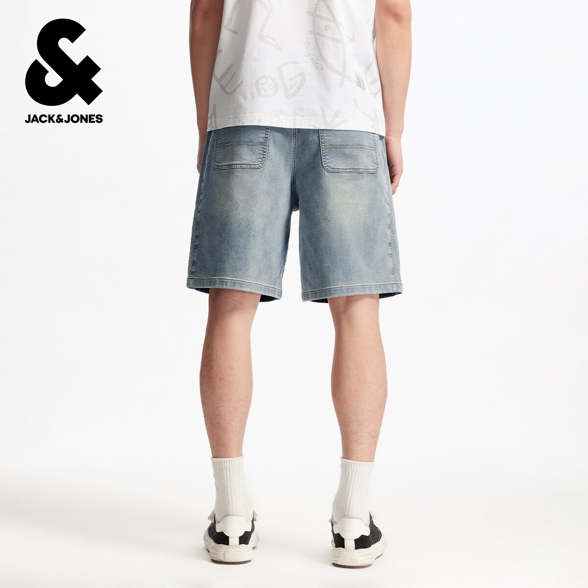 杰克琼斯男装短裤夏季新款潮酷出街百搭时尚水洗做旧抽绳牛仔裤子
