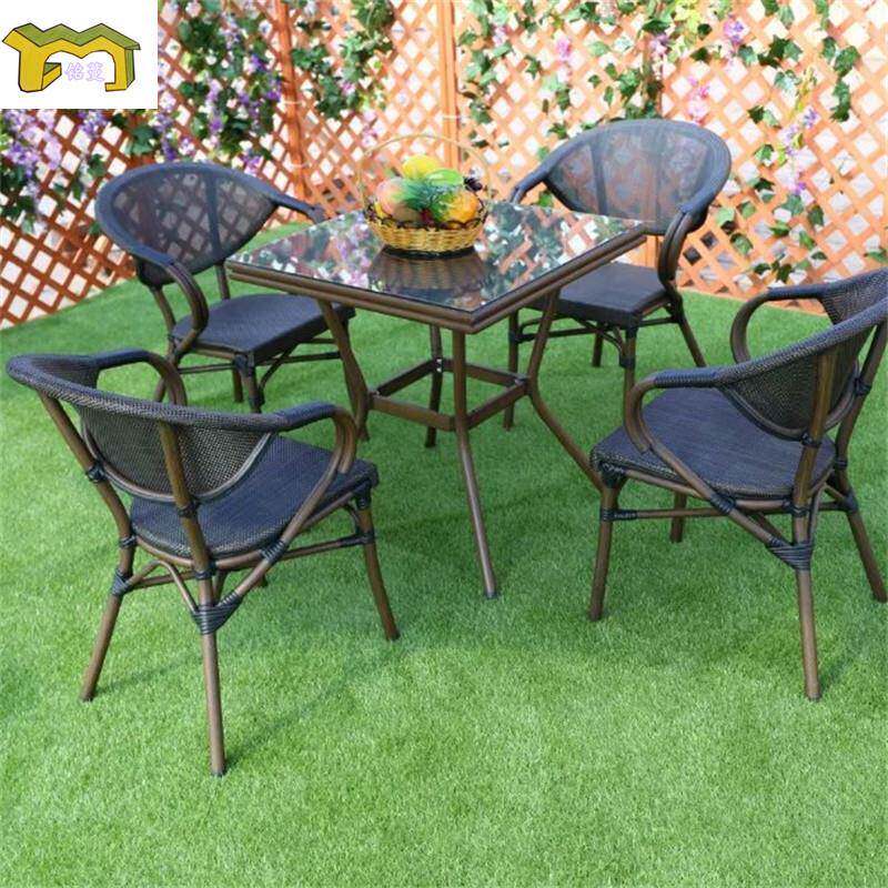 阳台小桌椅户外庭院花园桌椅咖啡厅连锁店小茶几藤椅休闲网布桌椅