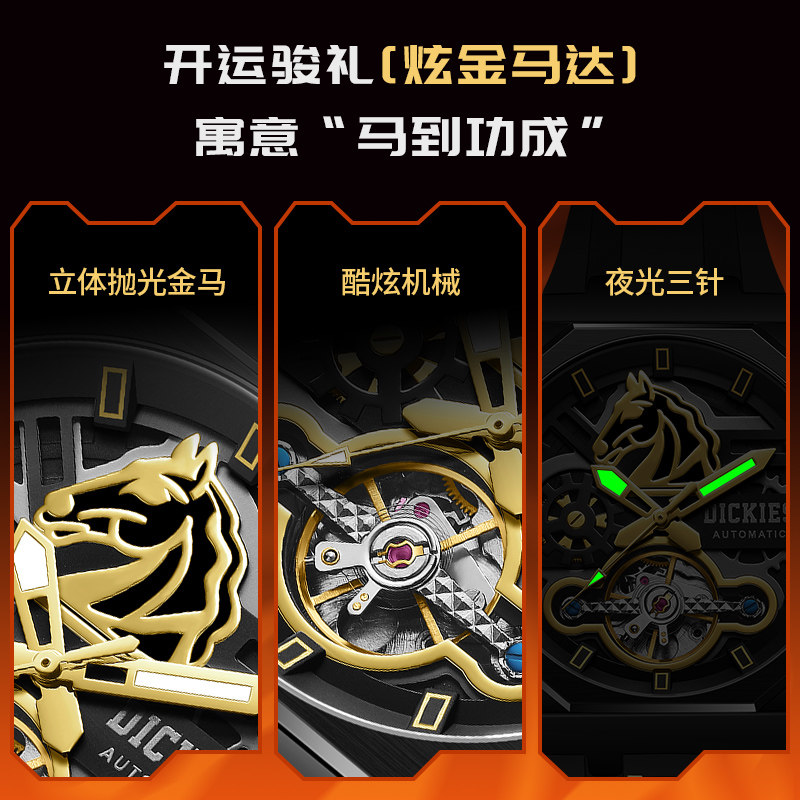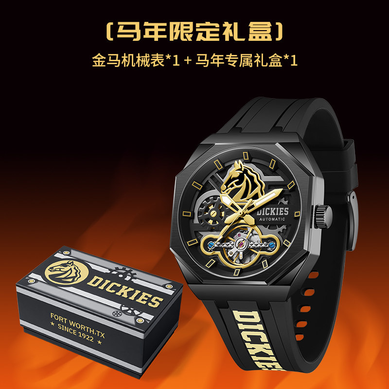 Dickies机械手表男士男款自动镂空学生潮流生肖新年礼物马年限定