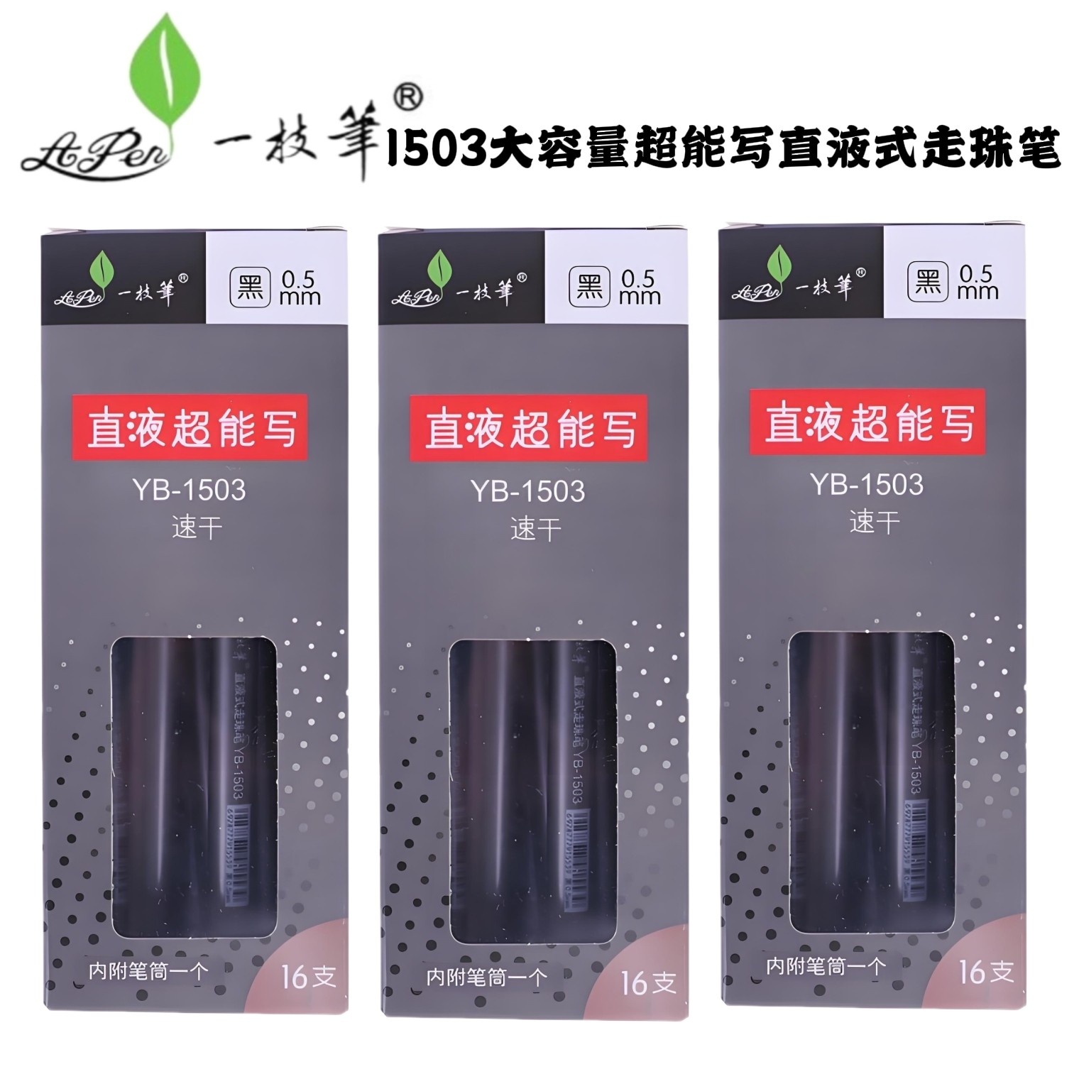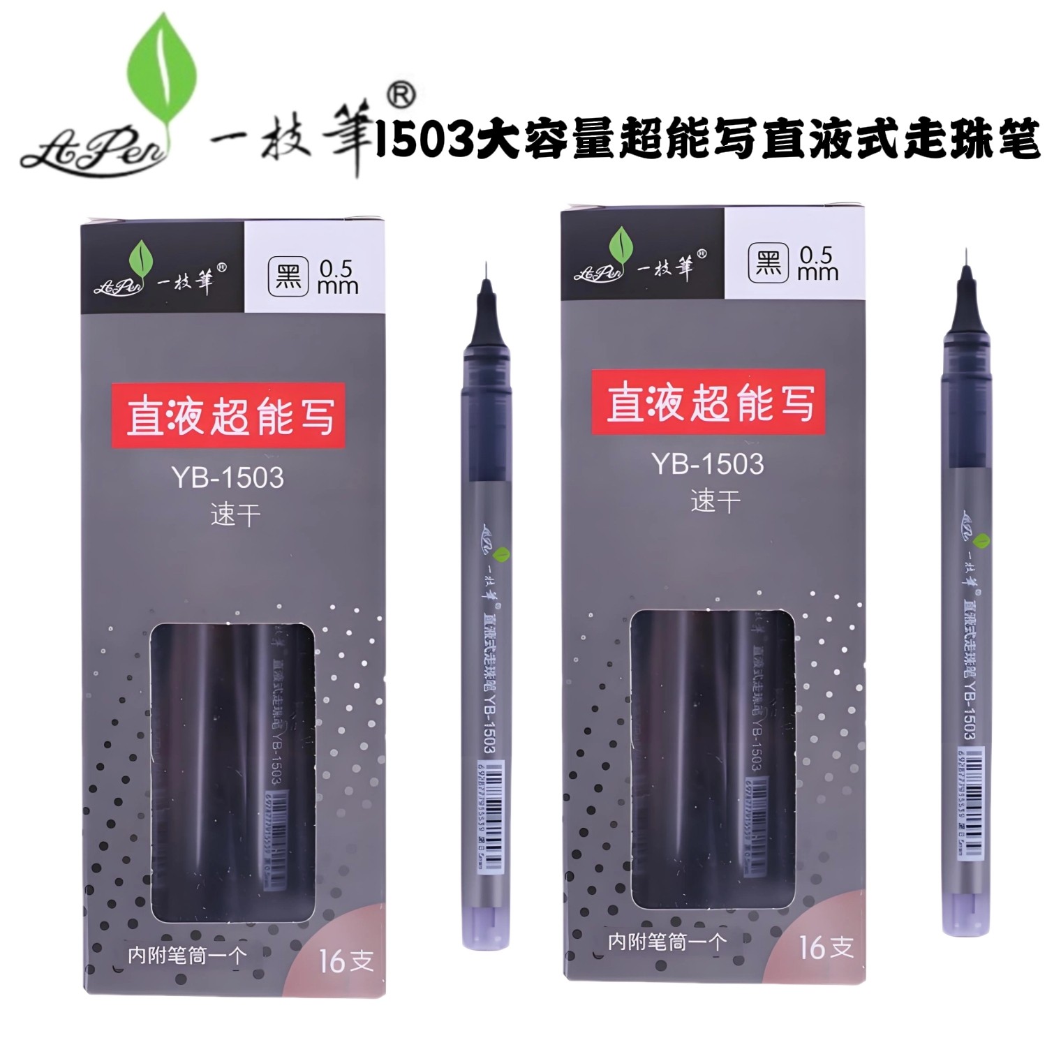 一枝笔直液式大容量走珠笔YB-1503中性笔学生用0.5直液超能写速干