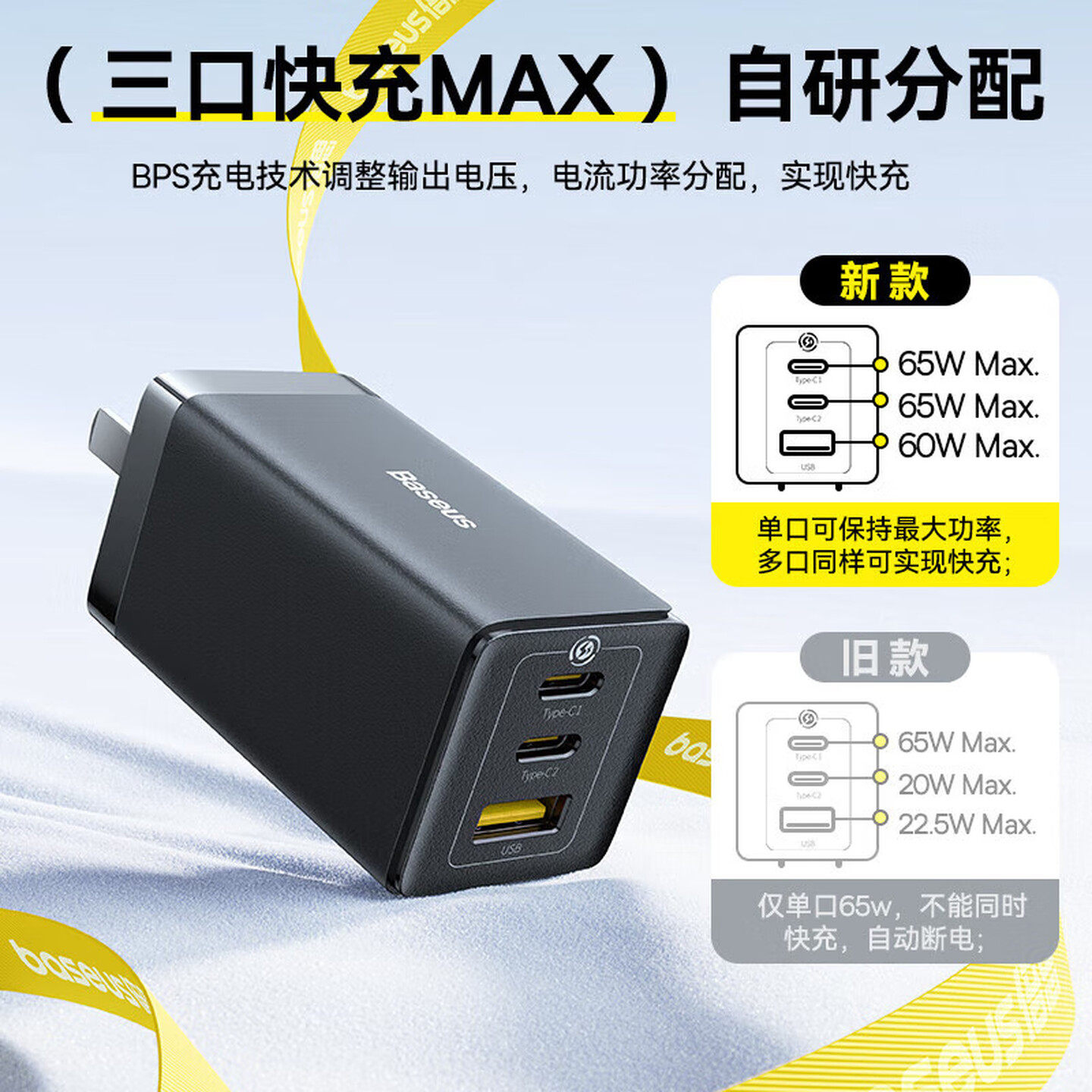 【国标3C认证】倍思65W氮化镓充电器适用苹果iPhone17华为pd快充手机充电头Type-c多口笔记本电脑macbook平板
