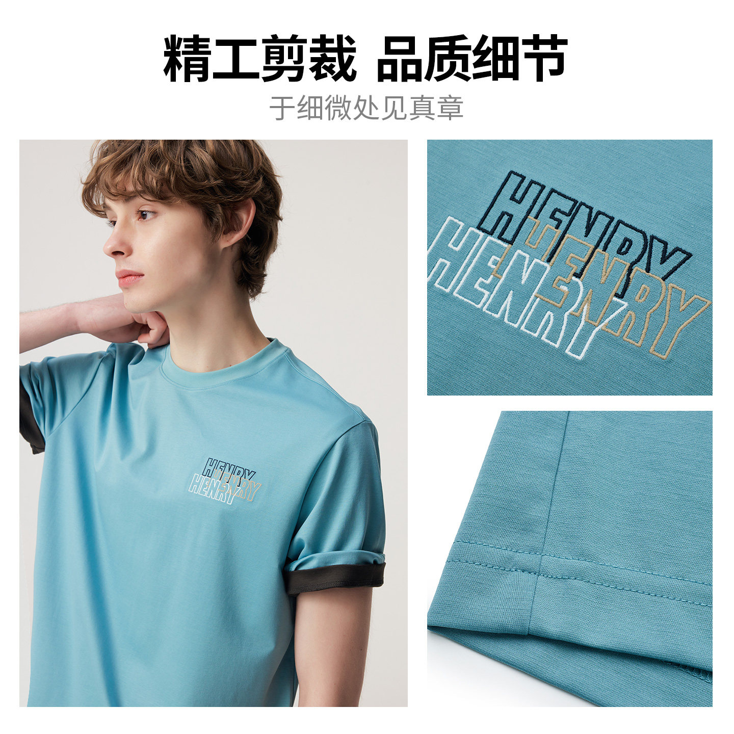【太极丝】亨利格兰字母圆领T恤男士2026夏新款潮流休闲百搭短袖