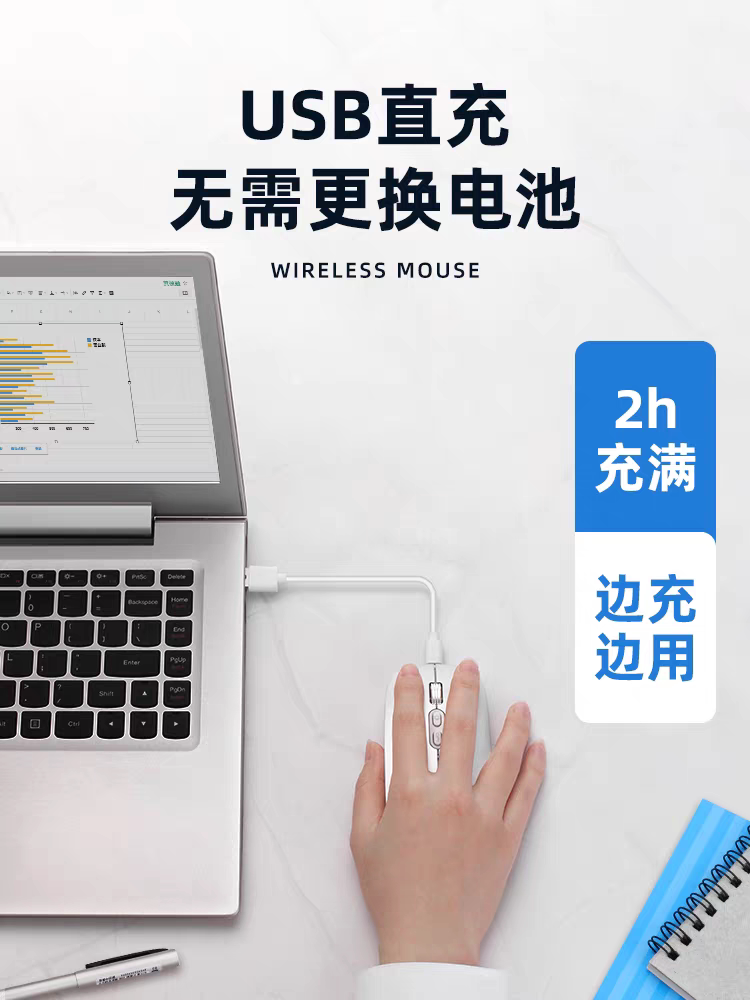 英菲克M9无线鼠标静音无声可充电typec笔记本电脑男生人体工学usb