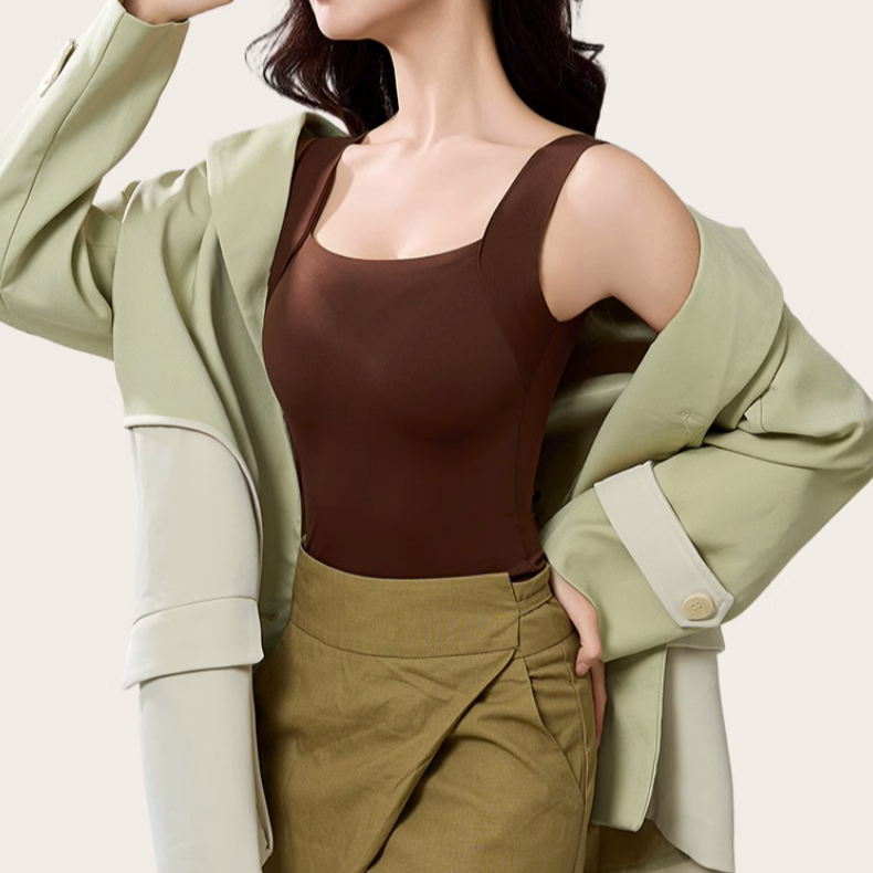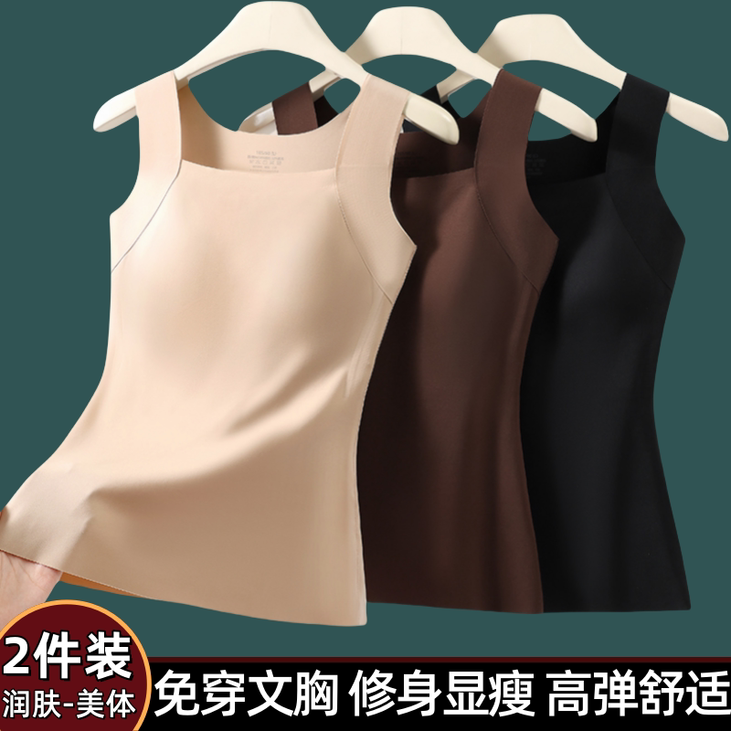 半练方领宽肩保暖背心女秋冬新款带胸垫吊带吸湿发热内搭显瘦打底