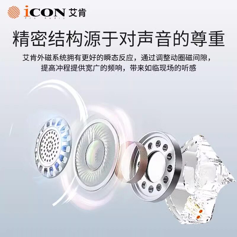 icon艾肯element7监听耳机直播声卡电脑2.5米有线入耳式主播专用