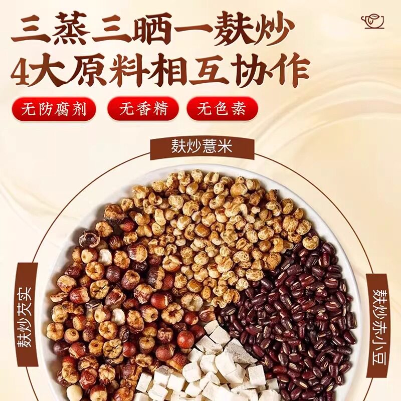 炒熟赤小豆薏仁薏米茯苓芡实祛湿气茶红豆水健脾养生茶三蒸除湿