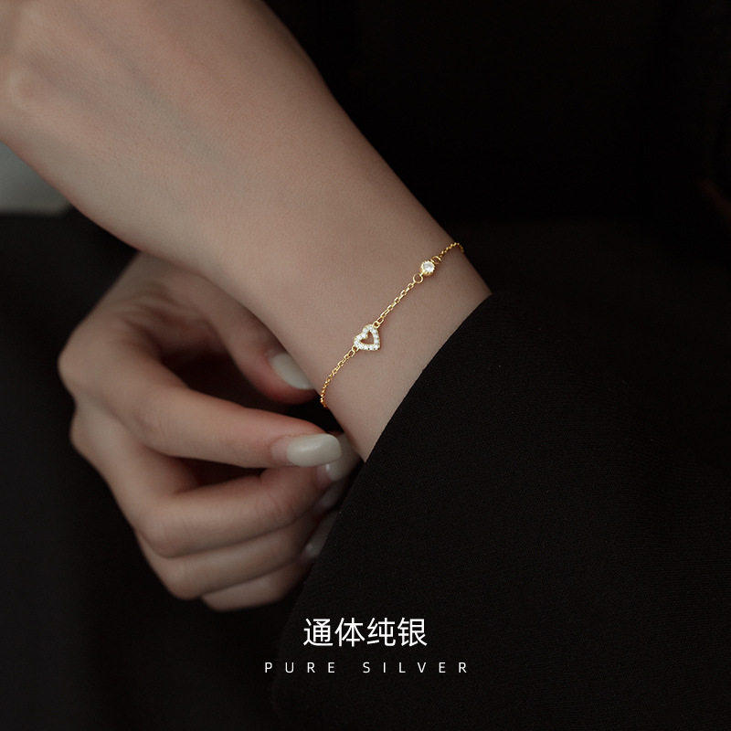 【幂琳】上手惊艳~s925纯银镀金色手链女爱心简约精致气质百搭轻