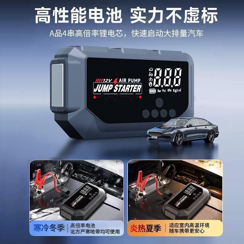 小能人汽车应急启动电源充气泵一体机车载打气电瓶紧急搭电宝神器