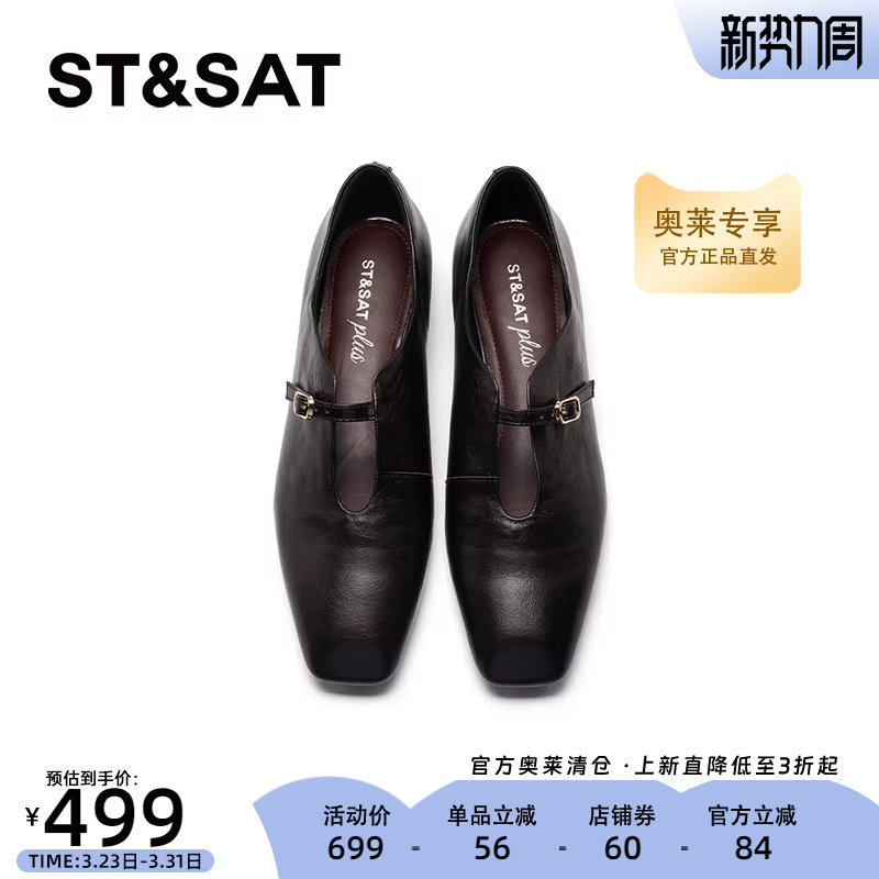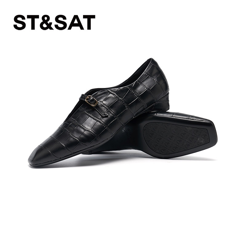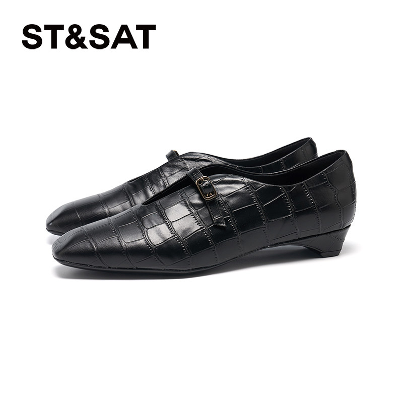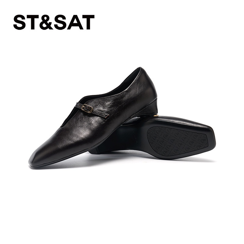 星期六法式尖头2025秋季时尚新款一字带扣浅口单鞋坡跟SSD3111090