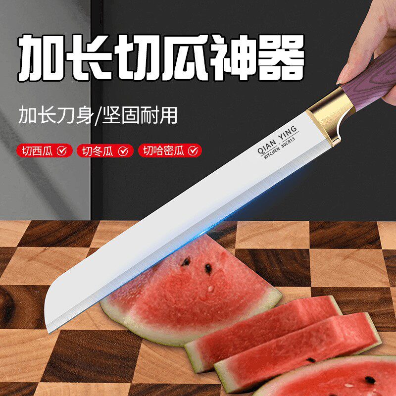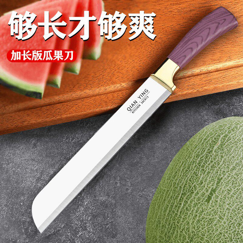 加厚水果刀家用不锈钢超锋利切西瓜专用刀具商用加长款果刀送刀套