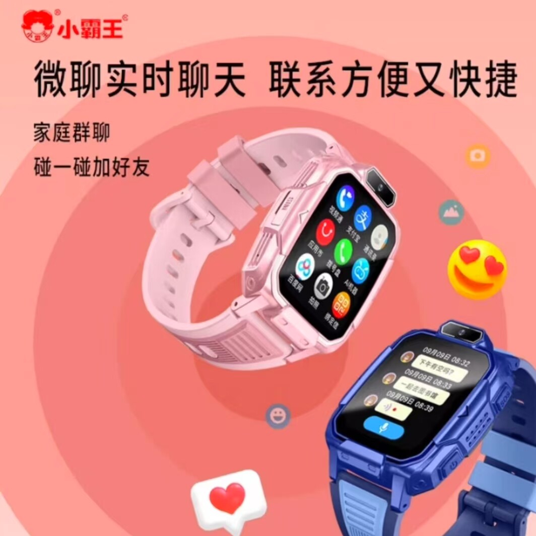 小霸王Y03儿童智能电话手表通话视频微聊定位IP67级防水家长高颜值学生专用全网通粉色多功能方形充电支付