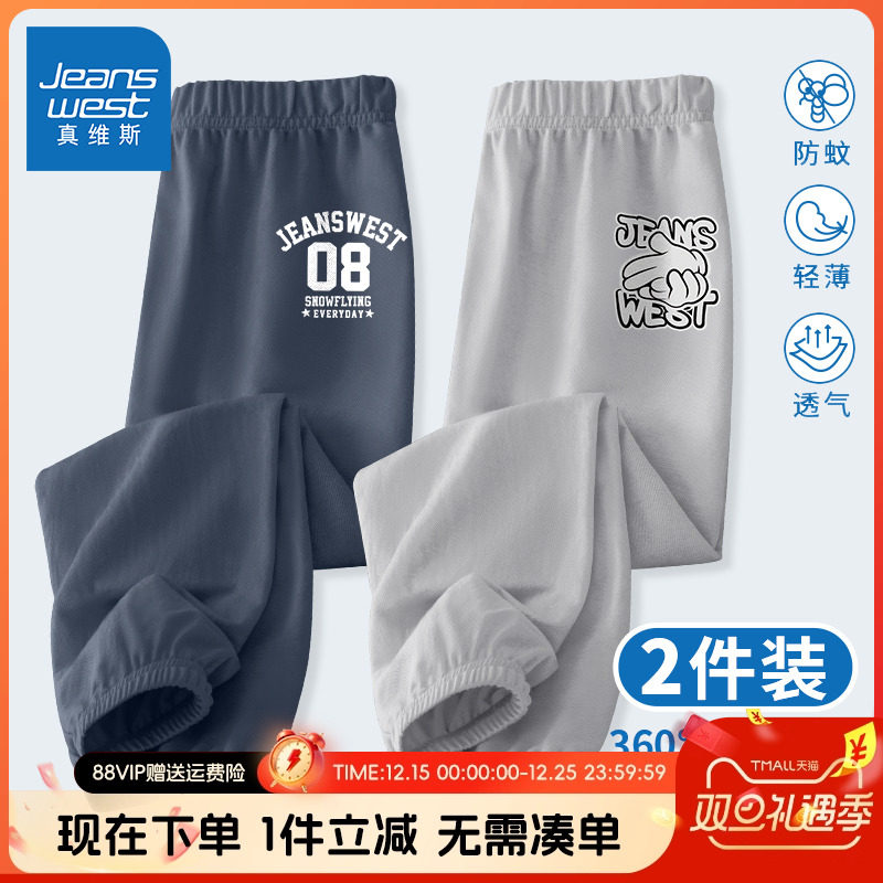 真维斯童装裤子男童夏季儿童纯棉运动长裤男大童透气休闲防蚊裤夏