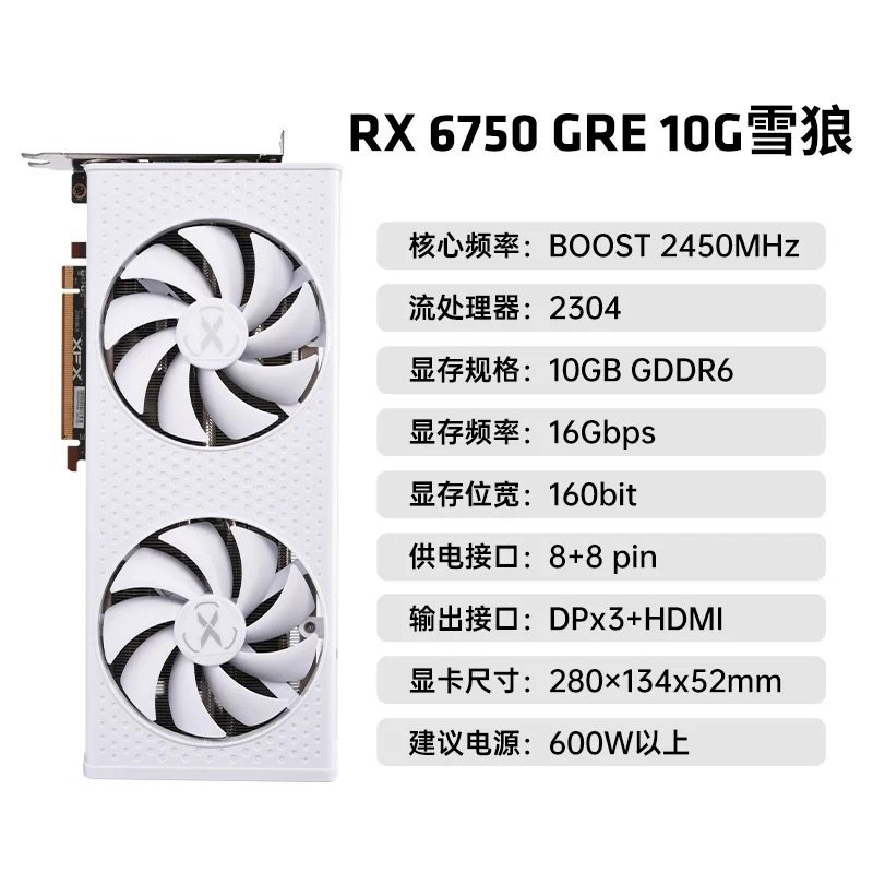 XFX讯景RX6750GRE 9070GRE 7650 12G16G雪狼黑狼海外台式电脑显卡