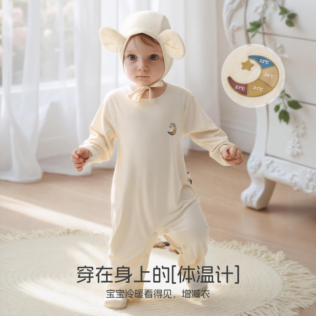[云朵小翼]aqpa爱帕婴儿连体衣哈衣竹纤维春夏长袖空调服宝宝睡衣