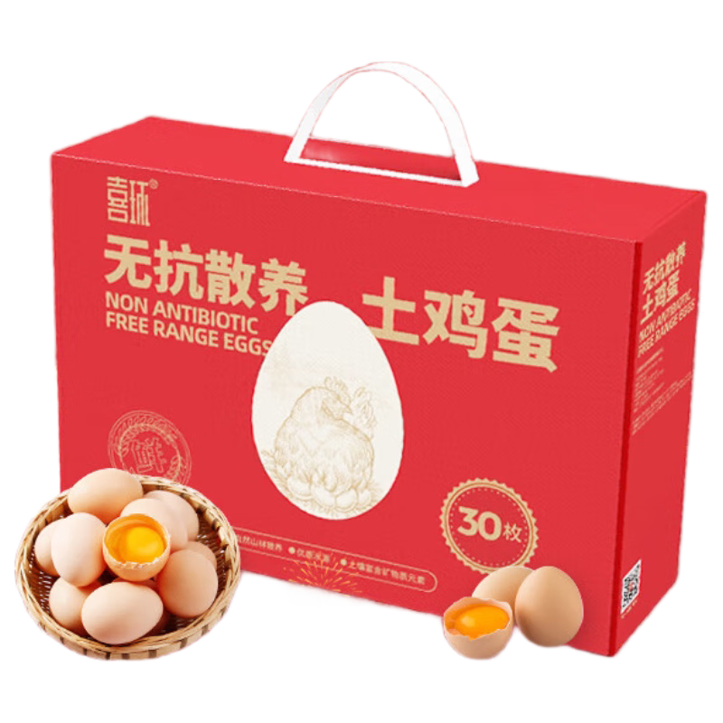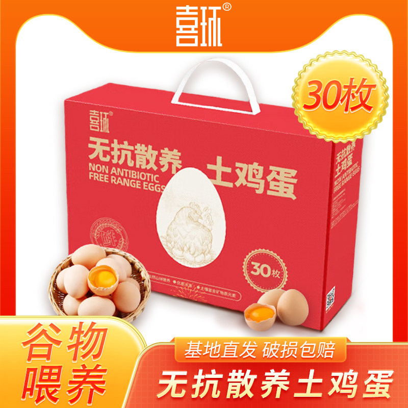 喜环30枚3斤1500g礼盒装无抗散养土鸡蛋