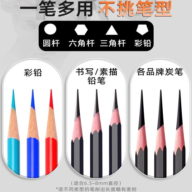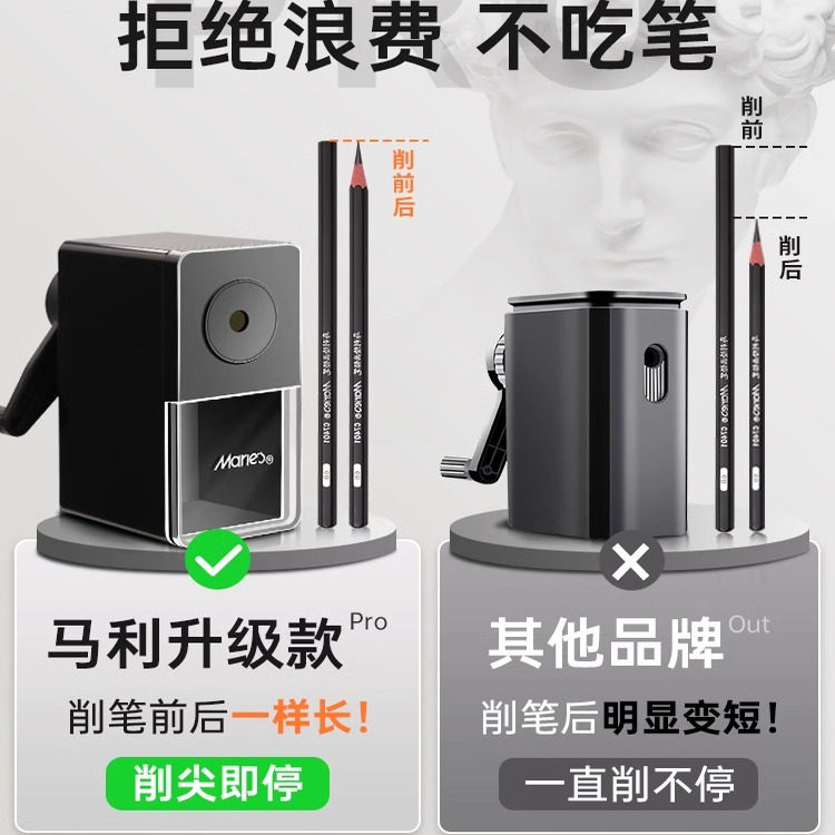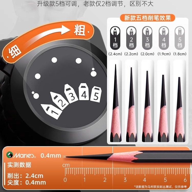 马利牌素描削笔器速写炭笔铅笔美术生削笔刀学生专用卷笔刀手摇转笔刀便携式小型粗细底部防滑设计不卡铅专业