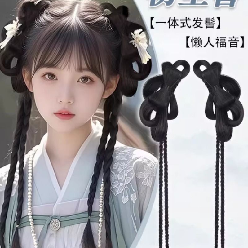 儿童汉服假发一体式古风盘发发髻女童蝴蝶结发包古装头饰垫发造型