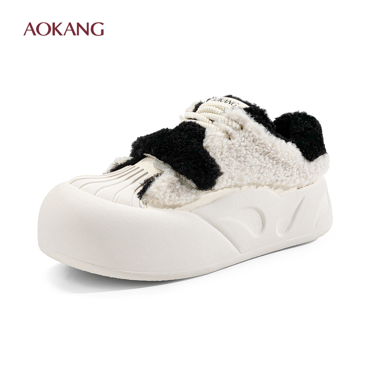 奥康 女鞋冬季新款厚底雪地靴加绒毛毛鞋保暖百搭松糕鞋N