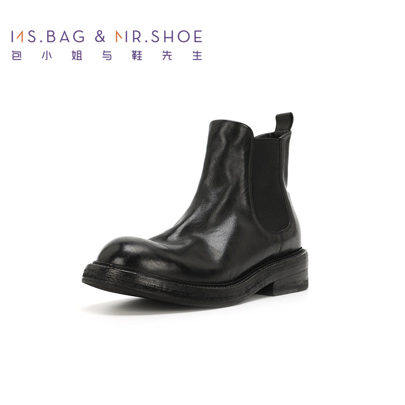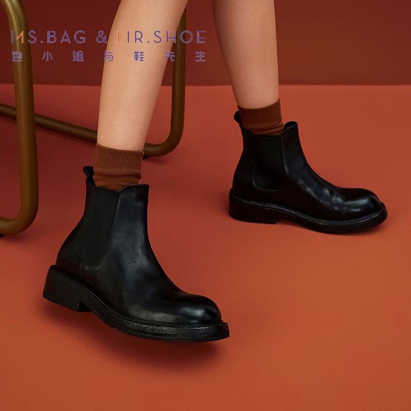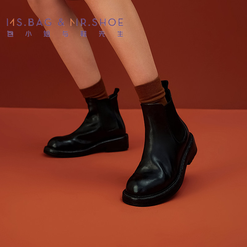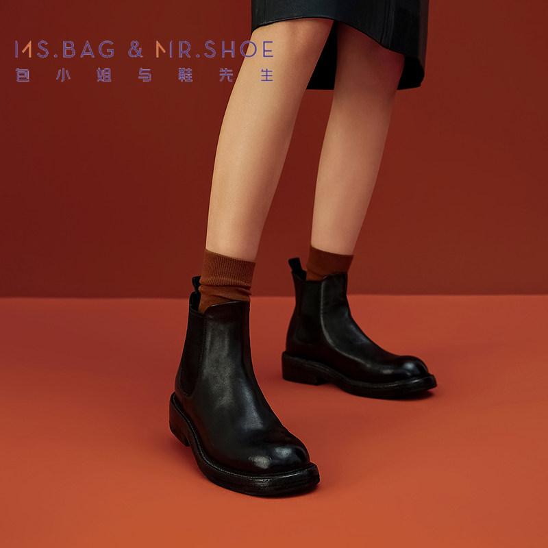包小姐与鞋先生秋冬季水洗马皮切尔西靴低跟短靴244169