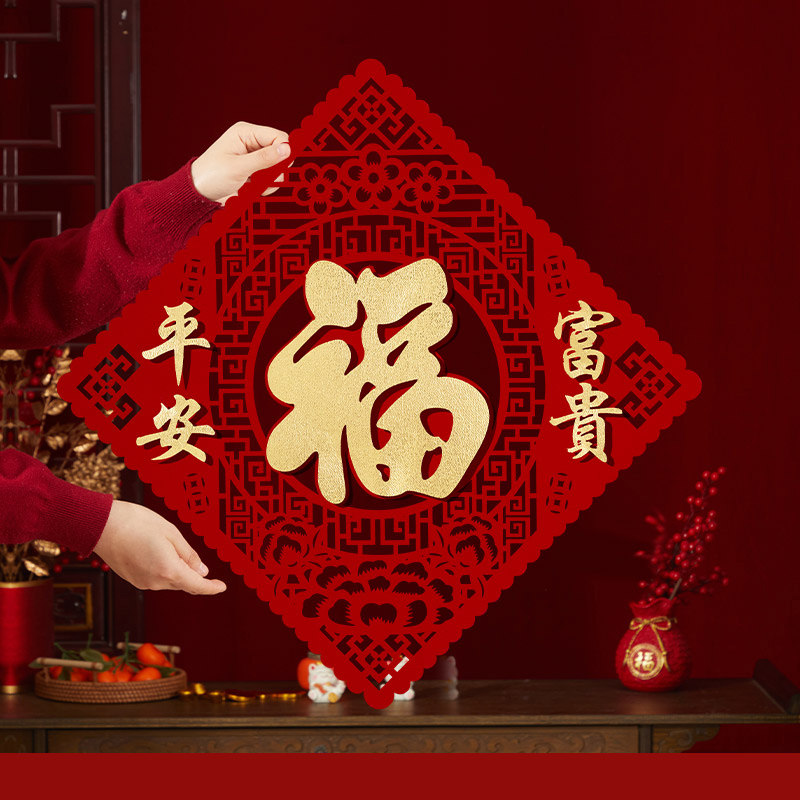 植绒面窗贴特大号福字门贴窗花剪纸静电贴纸玻璃贴过新年乔迁装饰