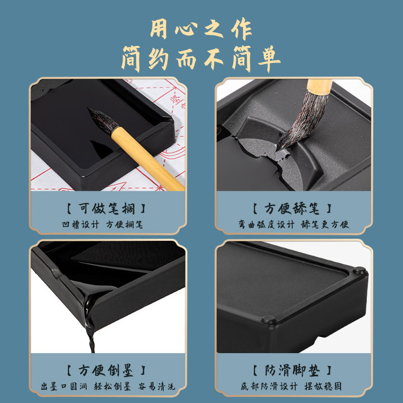 得力砚台书法专用砚毛笔墨盒墨盘可磨墨墨碟墨蝶火锅原石天然石砚儿童墨条墨块学生墨汁小罗纹硕台石研墨石头