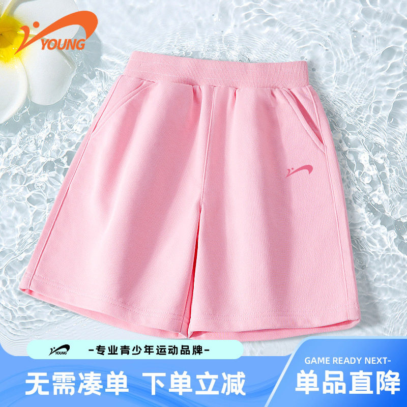 贵人鸟童装短裤女童夏季2026新款儿童纯棉裤子青少年粉色运动夏装