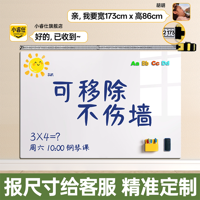 白板写字板磁性小黑板家用教学可擦可移除儿童不伤墙记事板涂鸦墙办公墙面家庭软白板磁力贴纸磁吸板贴墙墙贴