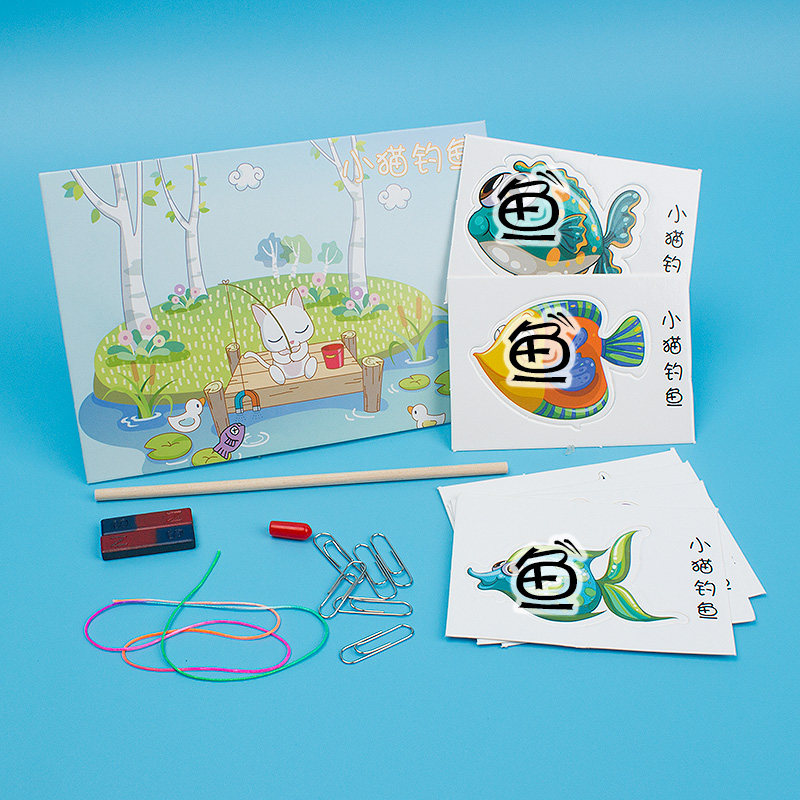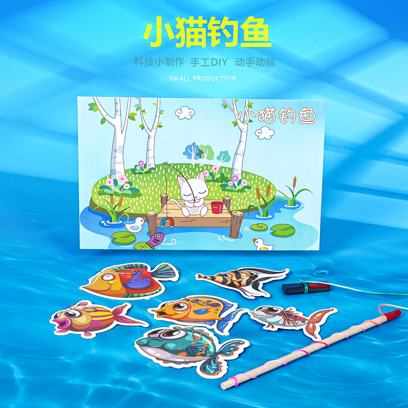 小猫钓鱼磁铁认知 手工DIY科技小制作幼儿园科学兴趣实验材料推荐