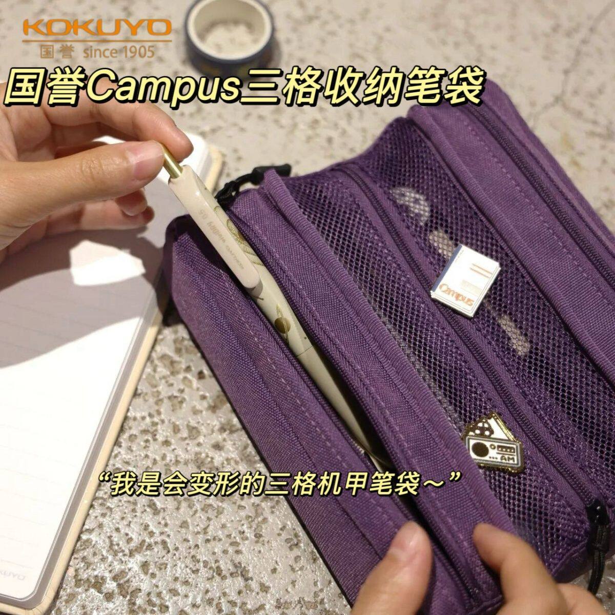 日本KOKUYO国誉Campus三格变形大容量笔袋多功能分类收纳学生用