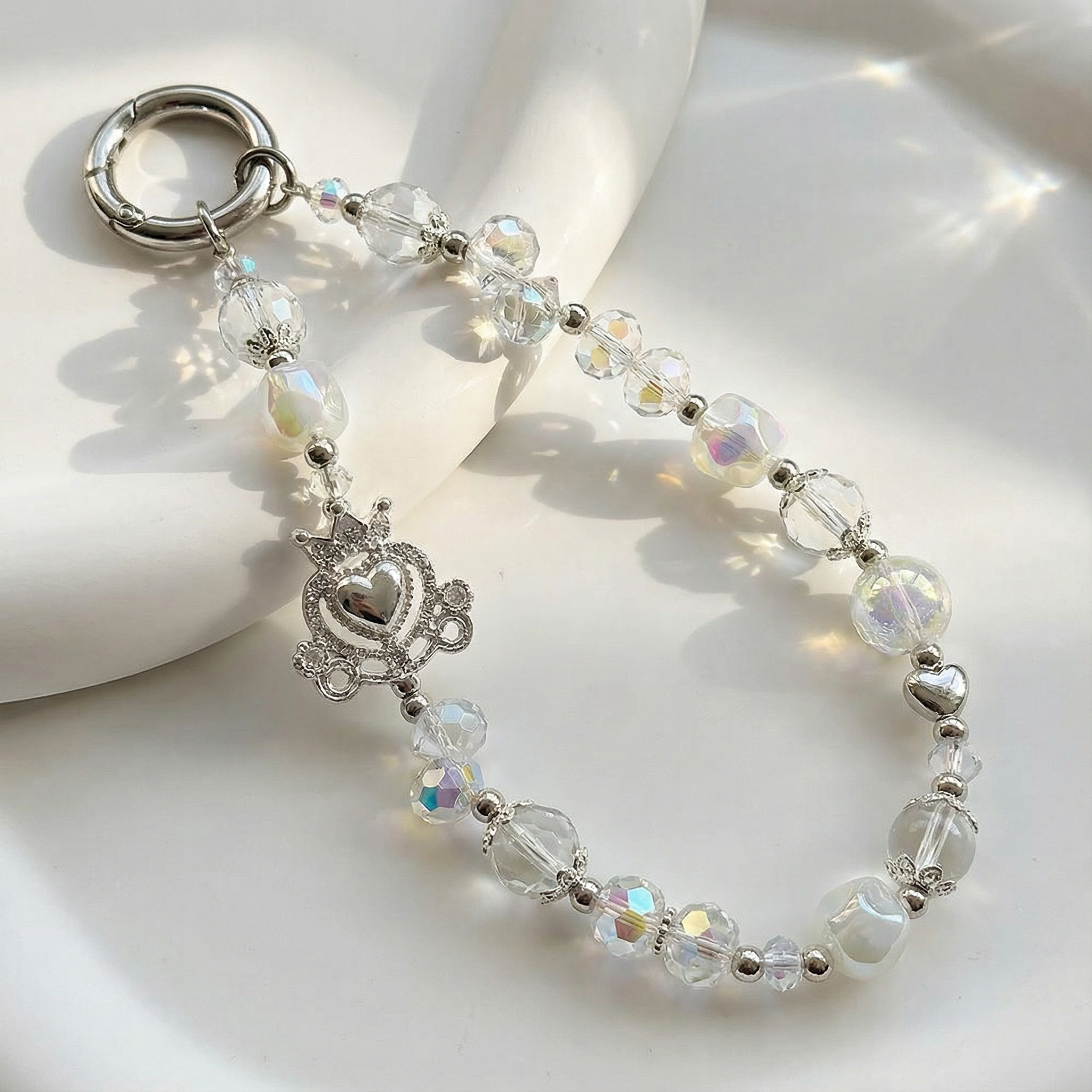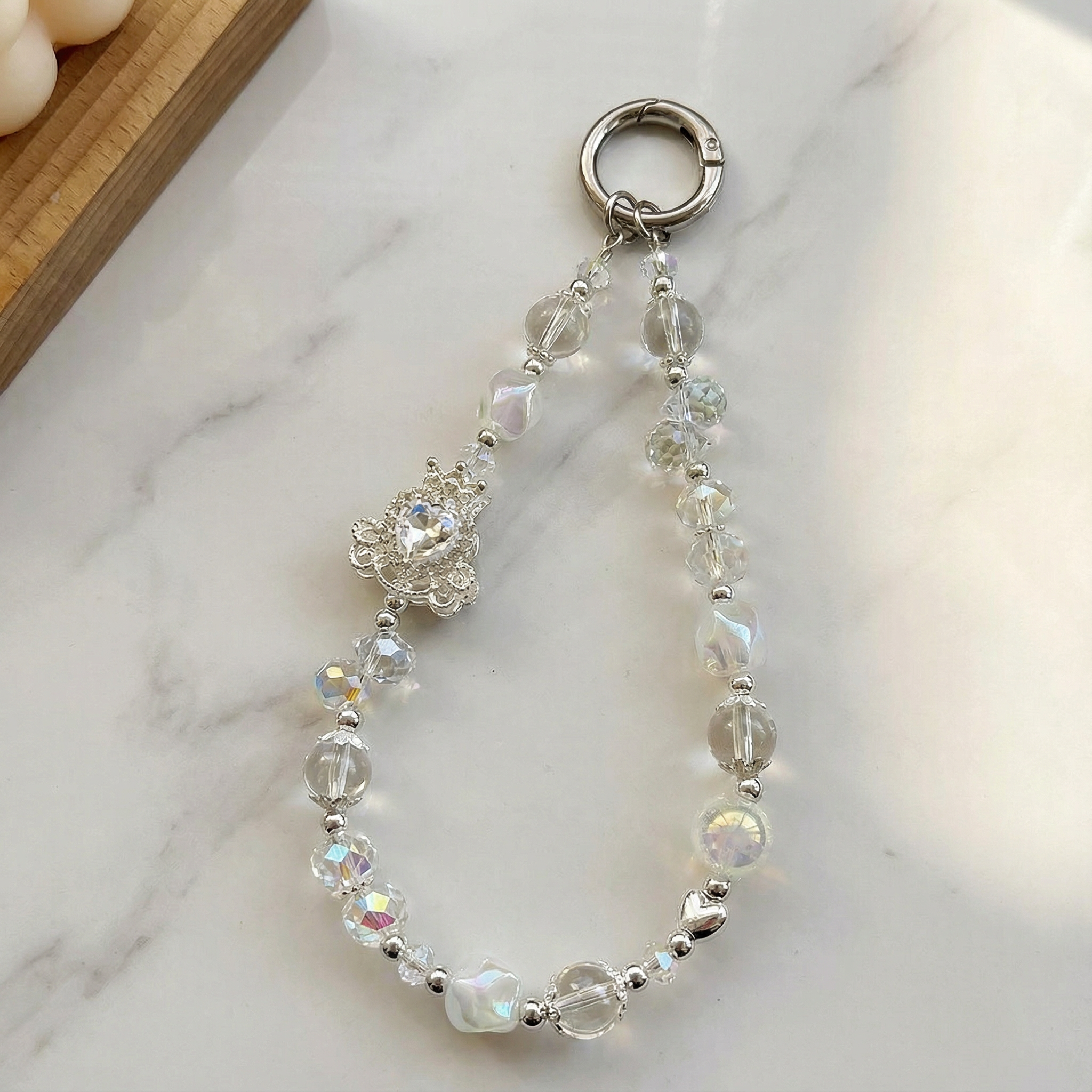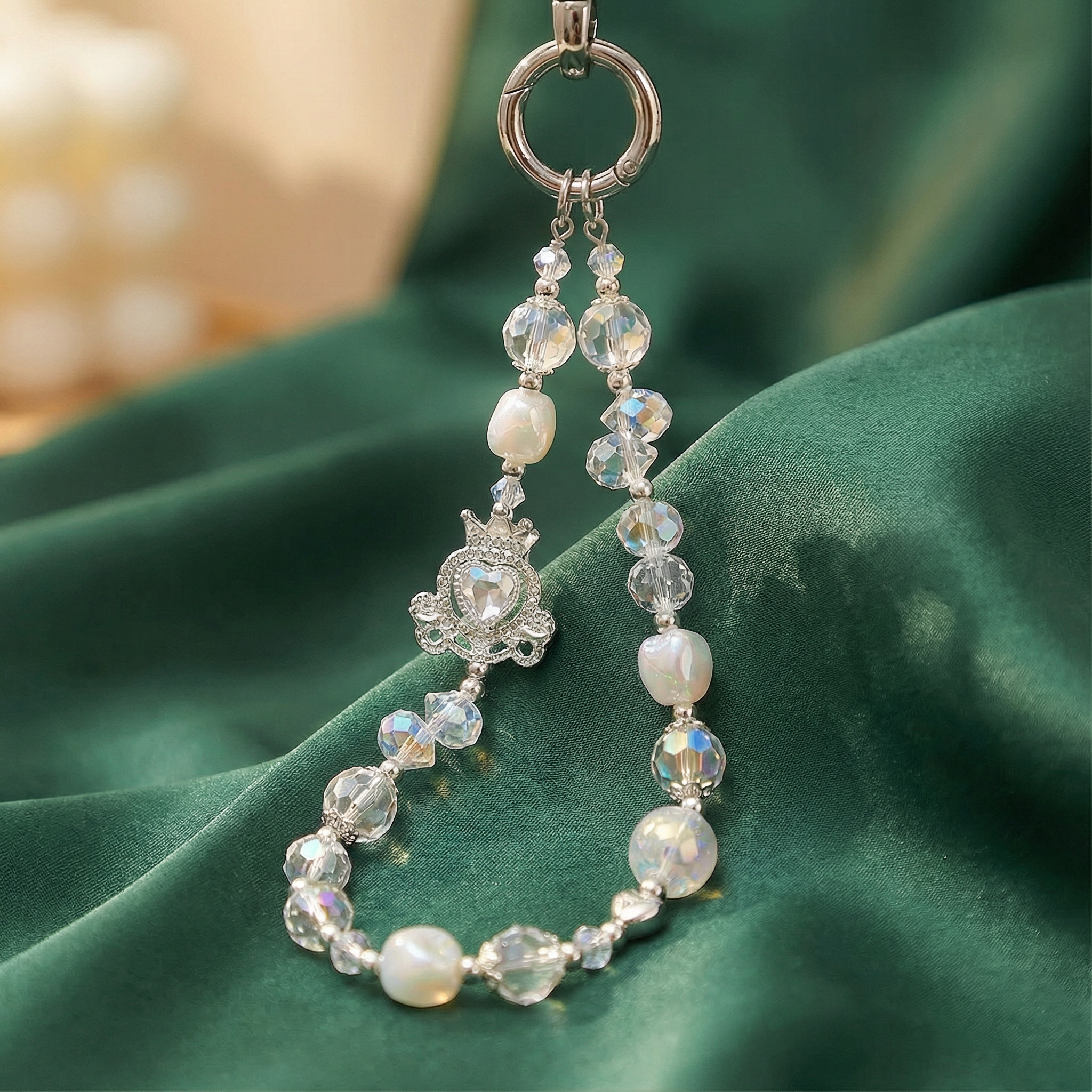 爱心紫色水晶珍珠手机链轻奢小众精致高级感手腕挂绳挂饰配件挂件