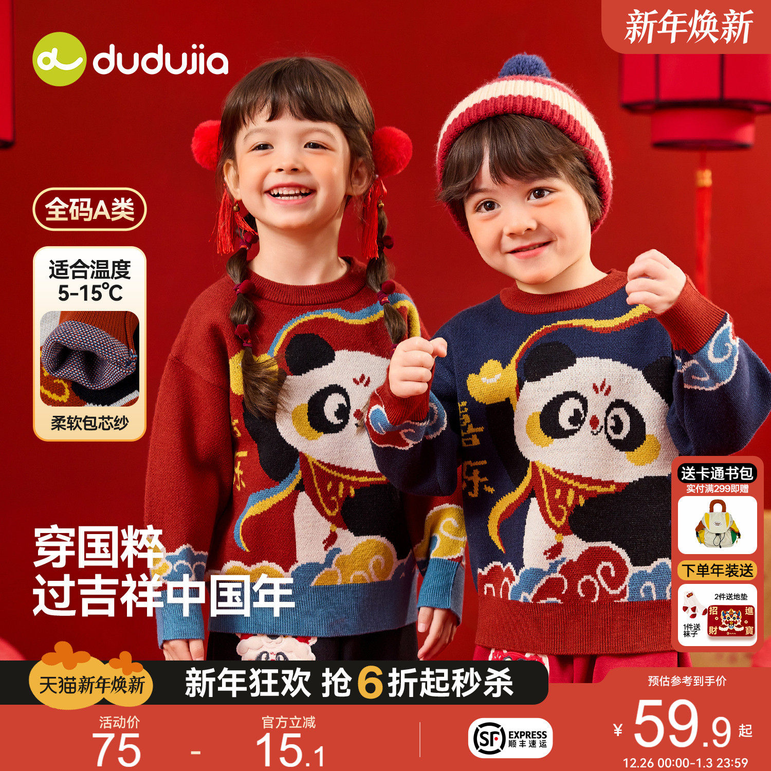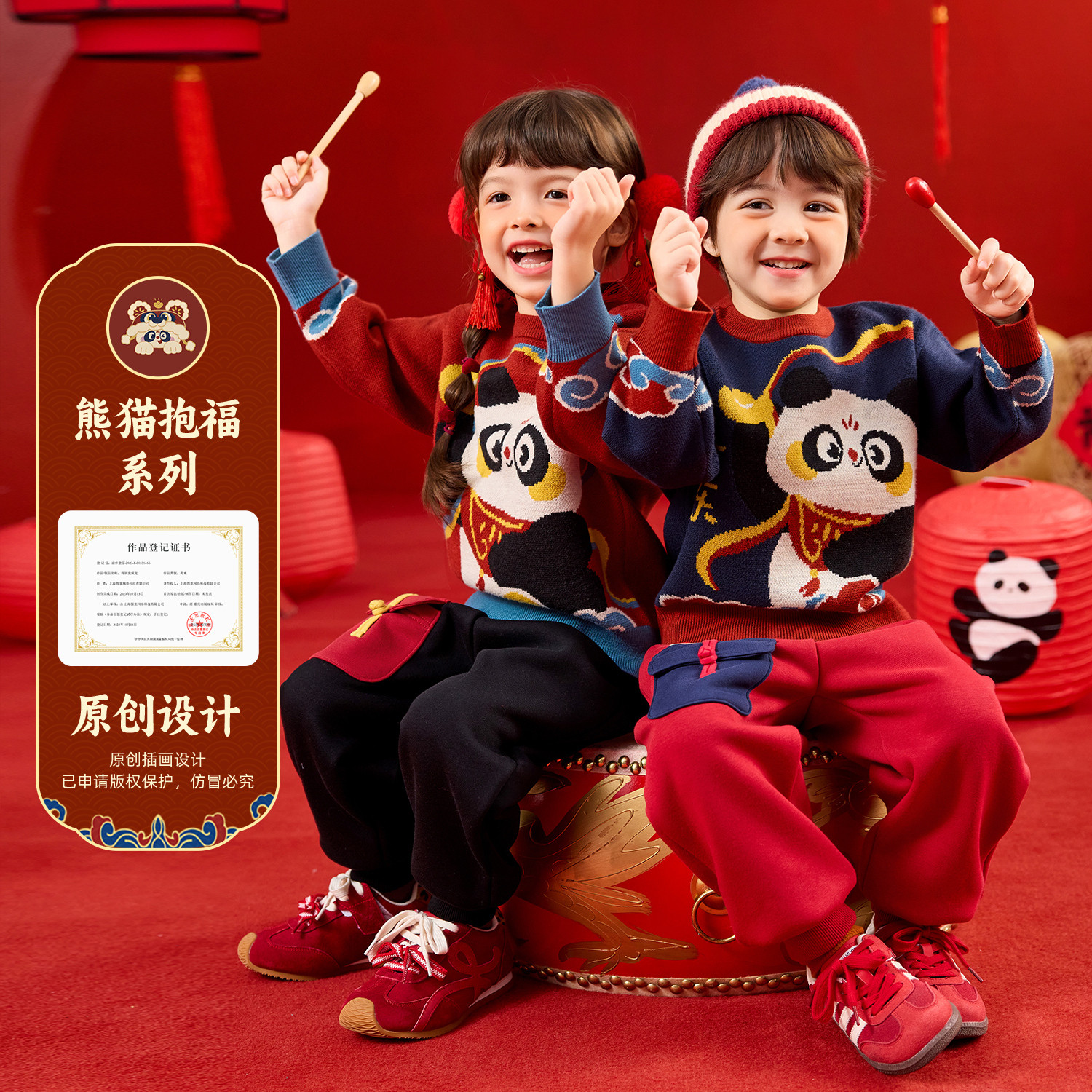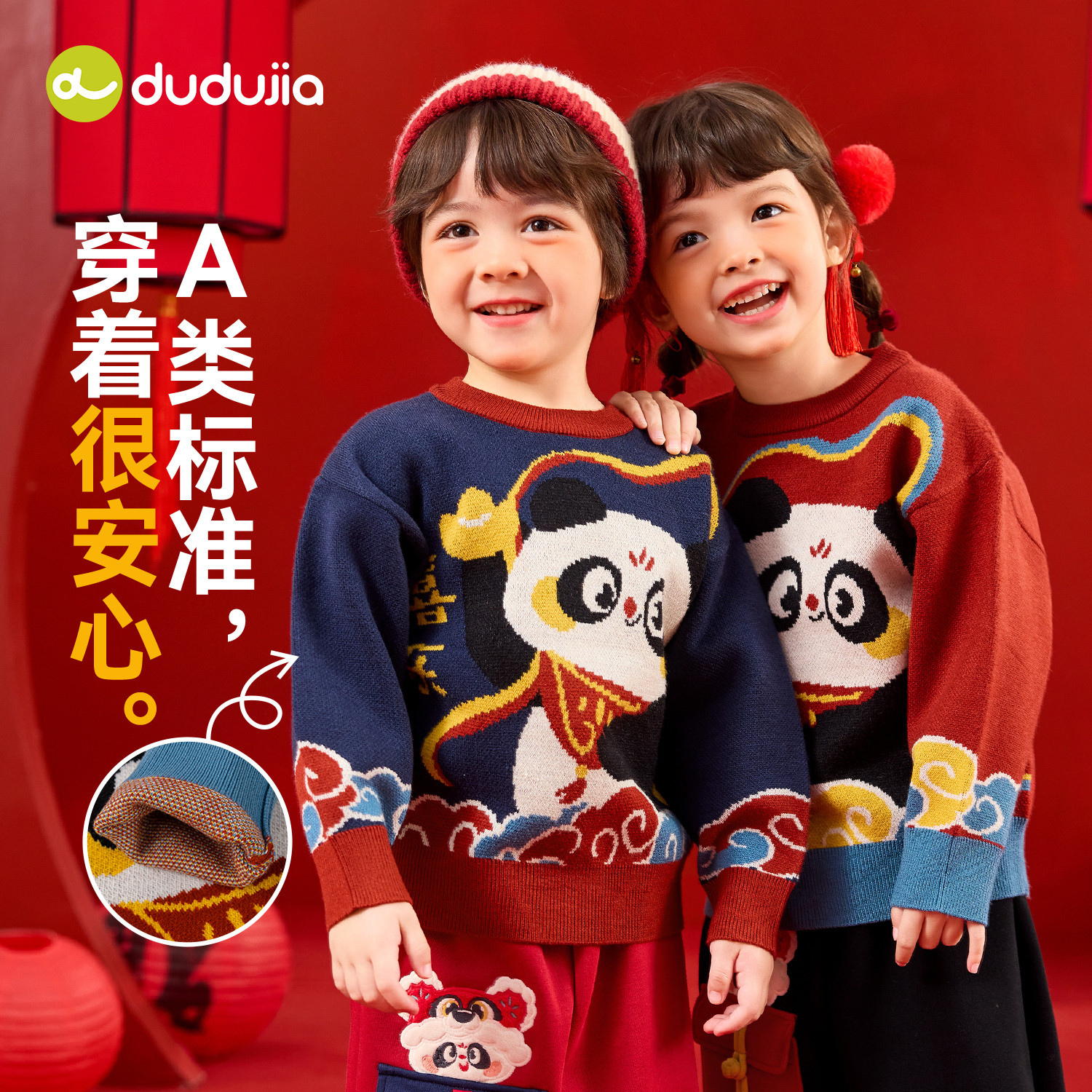 嘟嘟家男童拜年服冬季儿童唐装毛衣红色女童新年装宝宝上衣童装冬