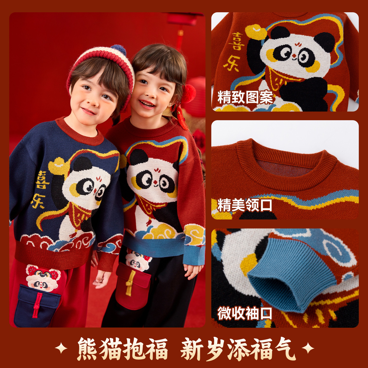 [骏马福裳]齐齐熊男童毛衣开衫冬装新年红色加厚宝宝毛线外套上衣