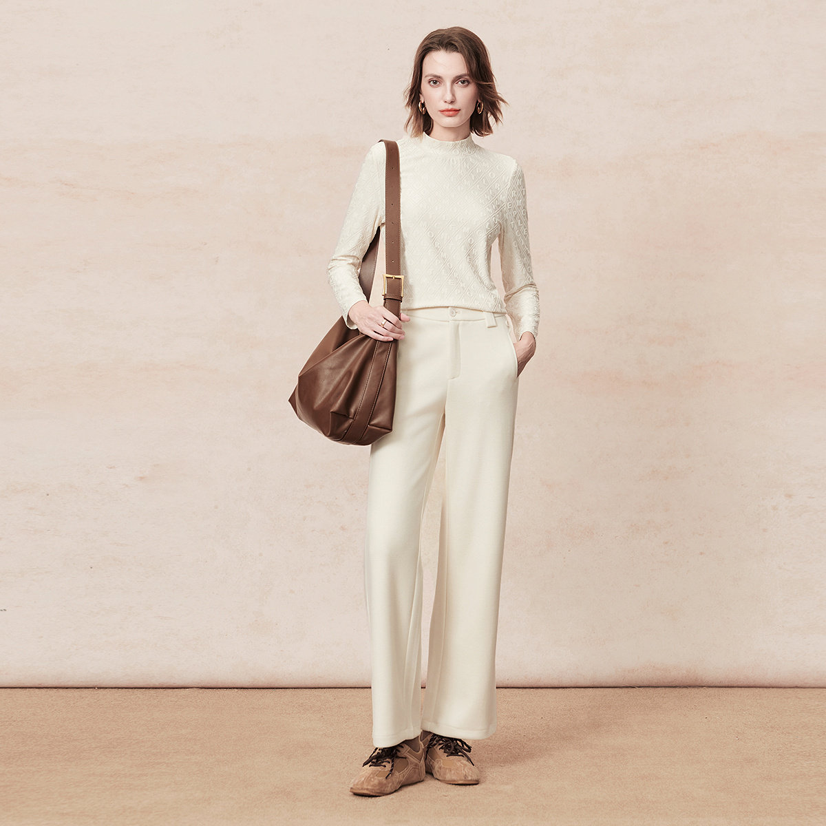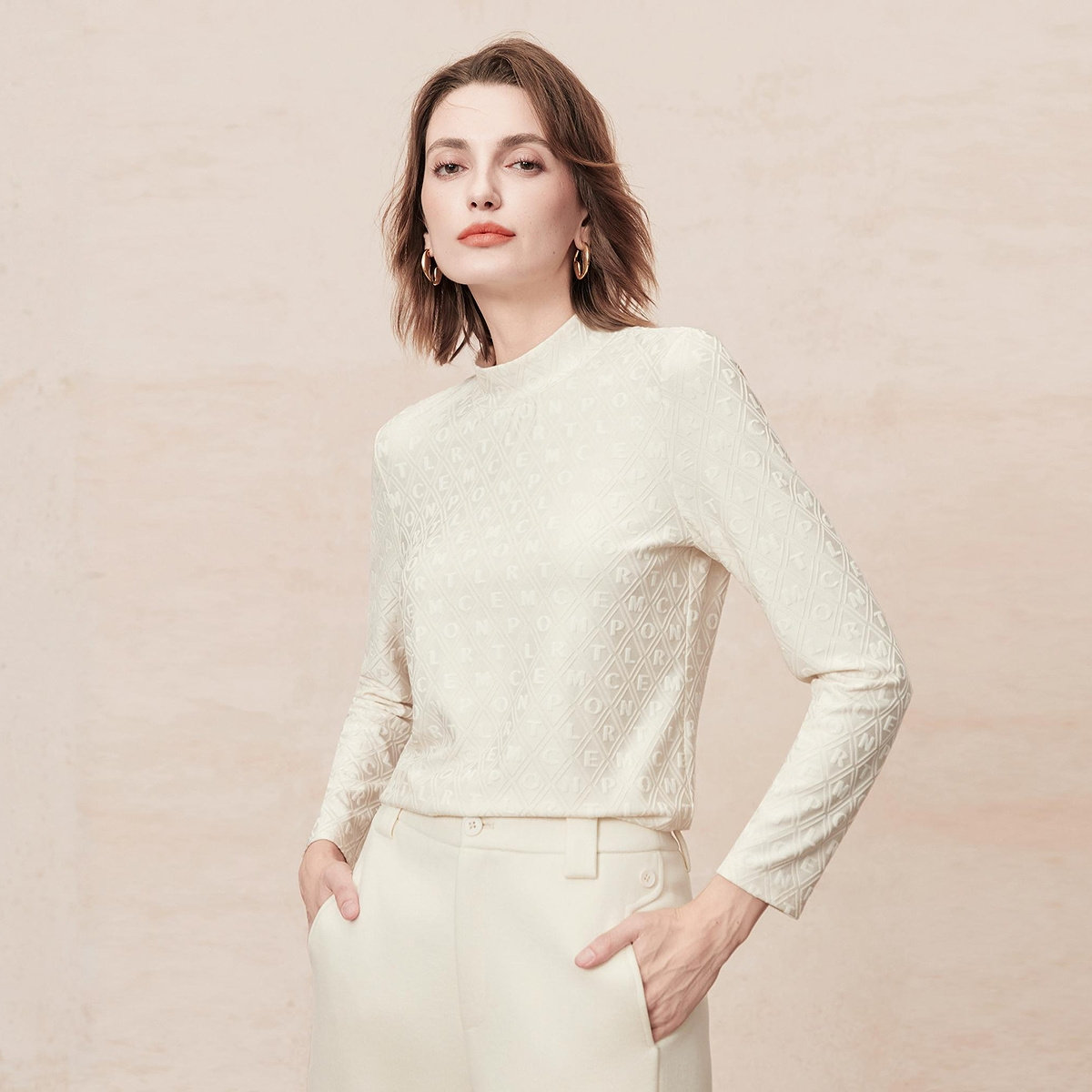 FINITY菲妮迪雪纺衫2025年冬季新款简约气质绣花高领百搭上衣女