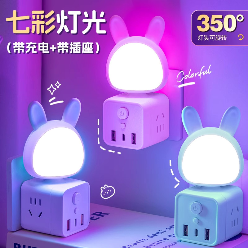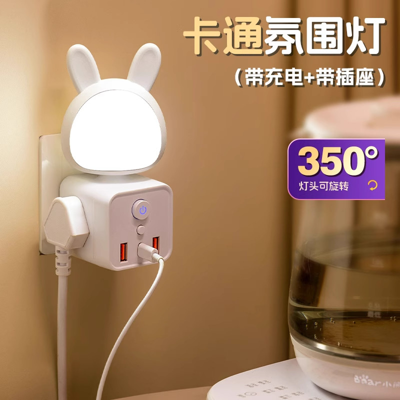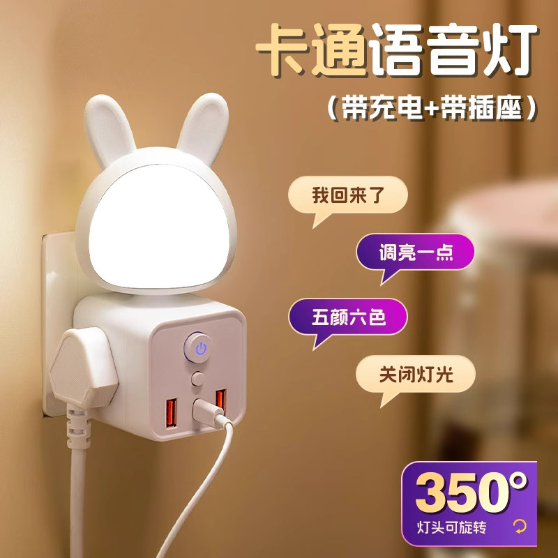 人工智能语音控制创意小夜灯插座语音声控LED护眼家用卧室床头灯