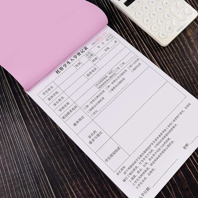 托管班学生入学登记表课后周末寒暑假临时托管协议书午托晚托收据托管班招生安全协议合同一式两联复写可定制