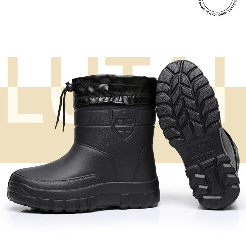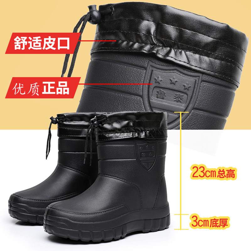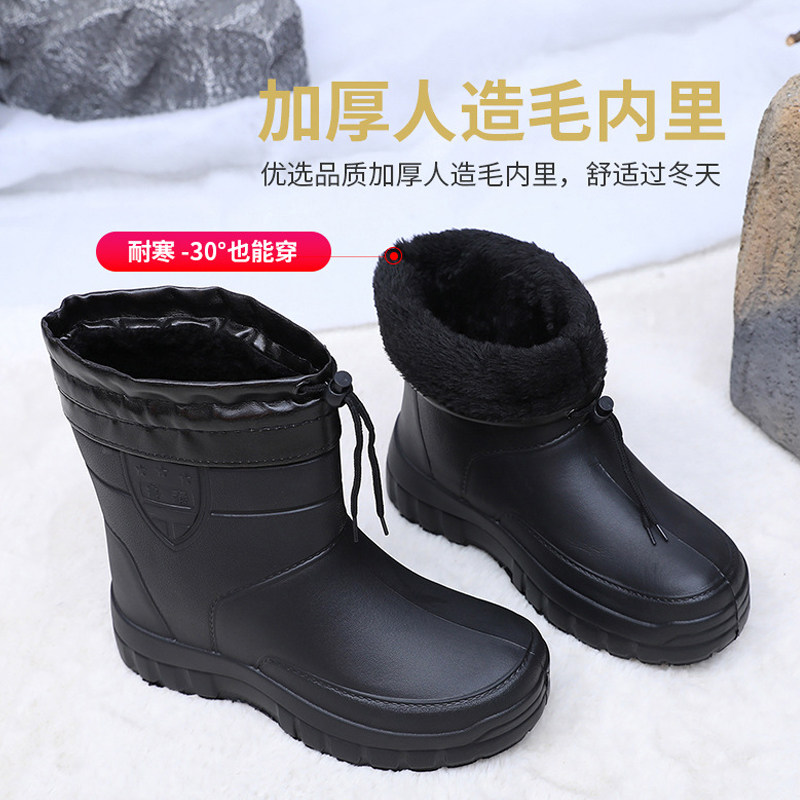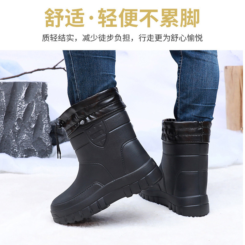 冬季加绒雨鞋男中筒雨靴轻便防滑加厚水鞋大码保暖胶鞋防水工作鞋