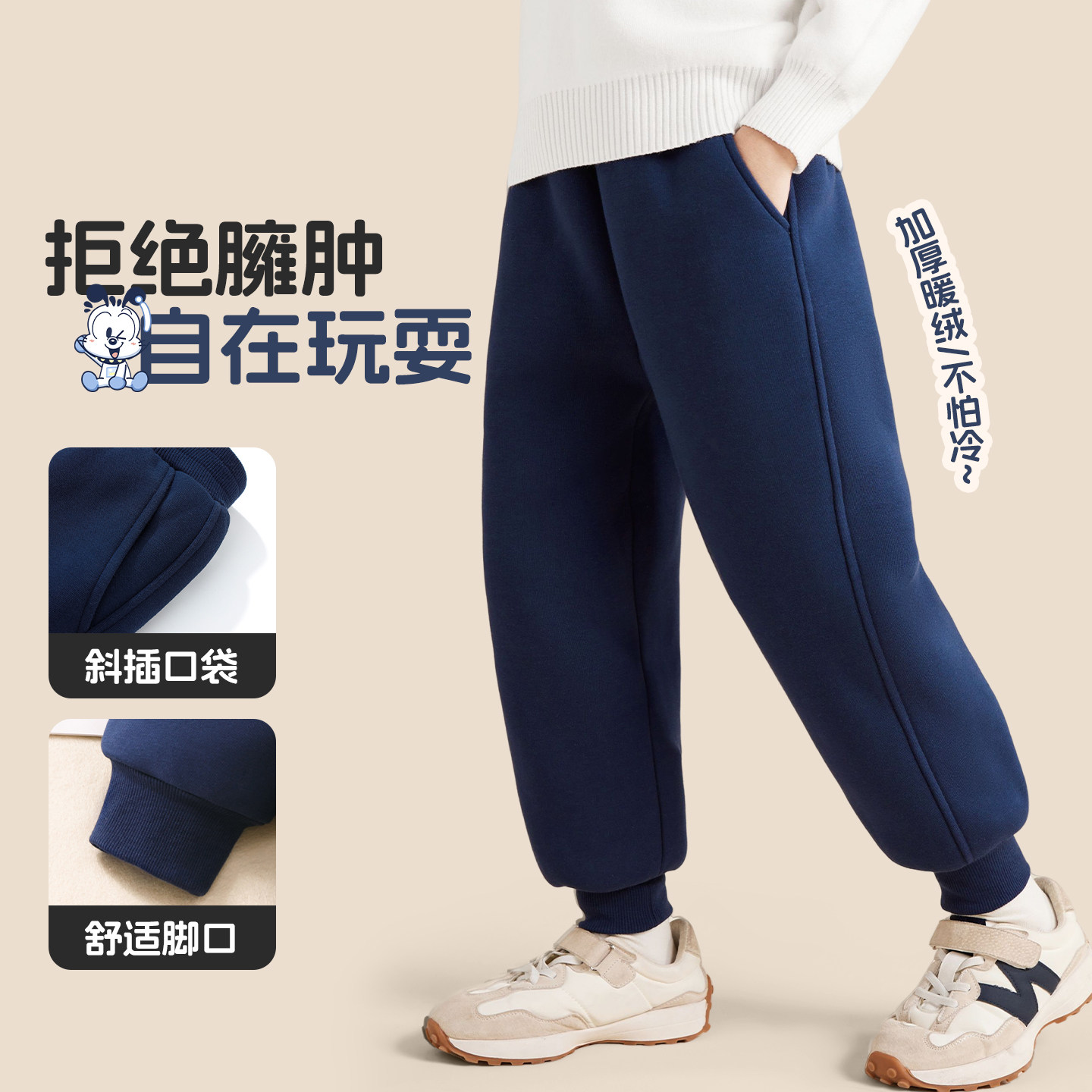 巴布豆男童加绒裤子秋冬2025新款一体绒保暖长裤儿童加厚运动卫裤