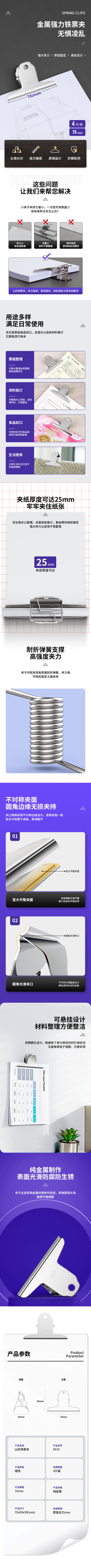 得力山形铁票夹金属夹票据夹76mm钢铁夹子不锈钢不生锈强力夹可挂
