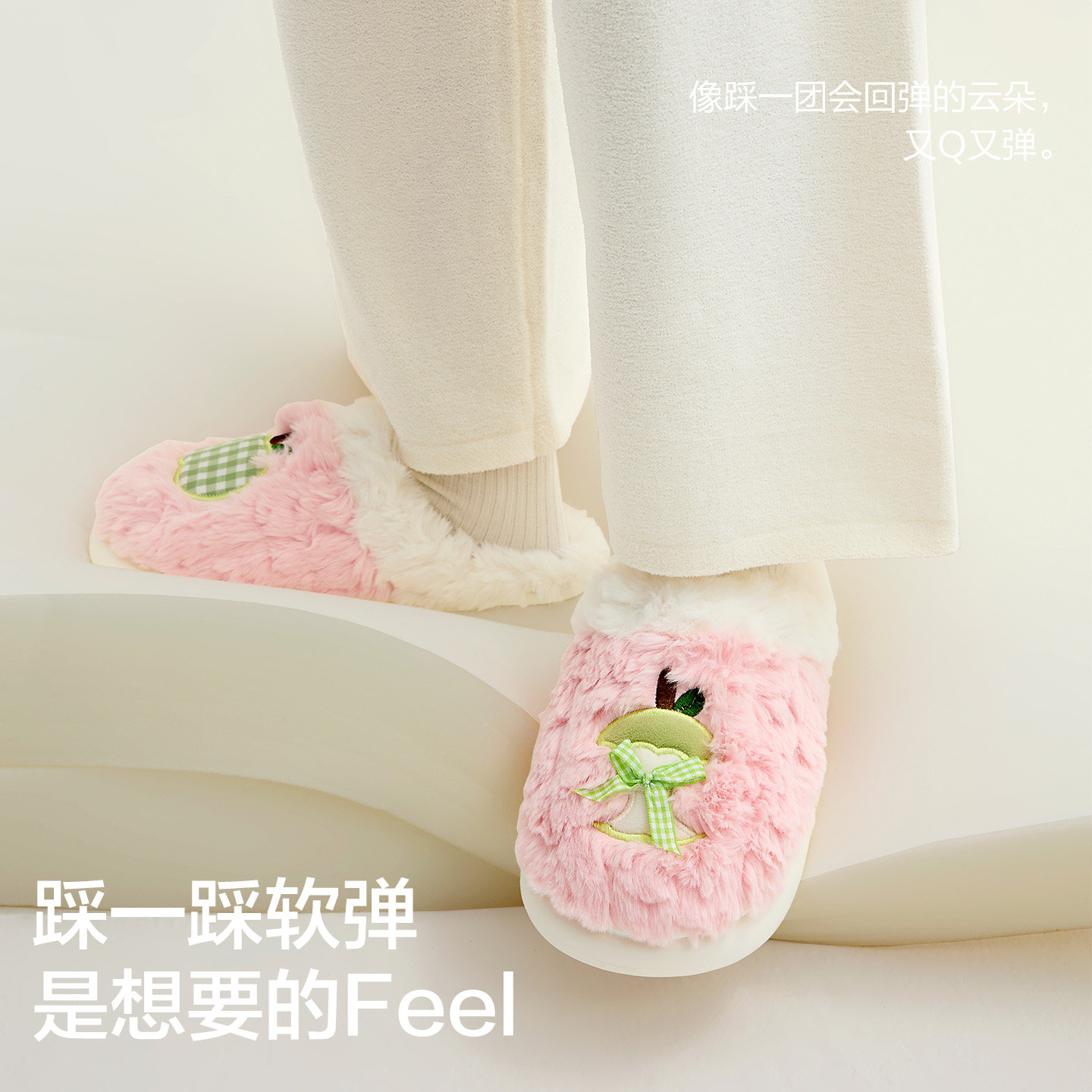 三利可爱苹果棉拖鞋女2025新款冬季家居室内保暖加绒防滑毛毛拖