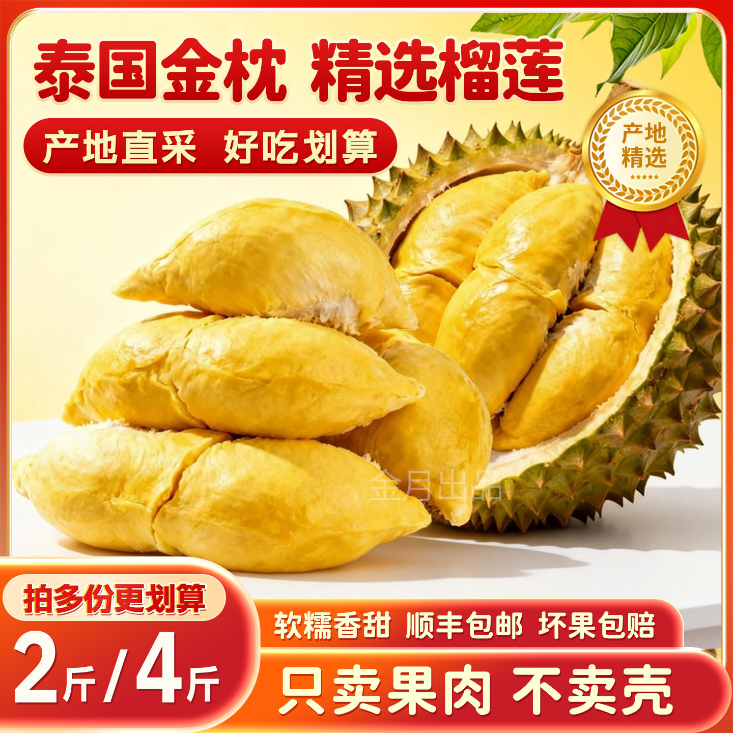 泰国金枕榴莲肉3.6斤冷冻肉熟1.8斤冷冻榴莲肉非猫山新鲜顺丰包邮