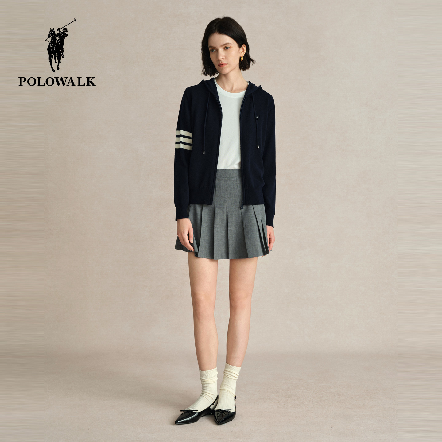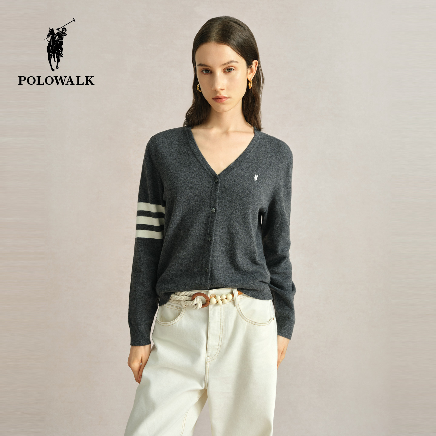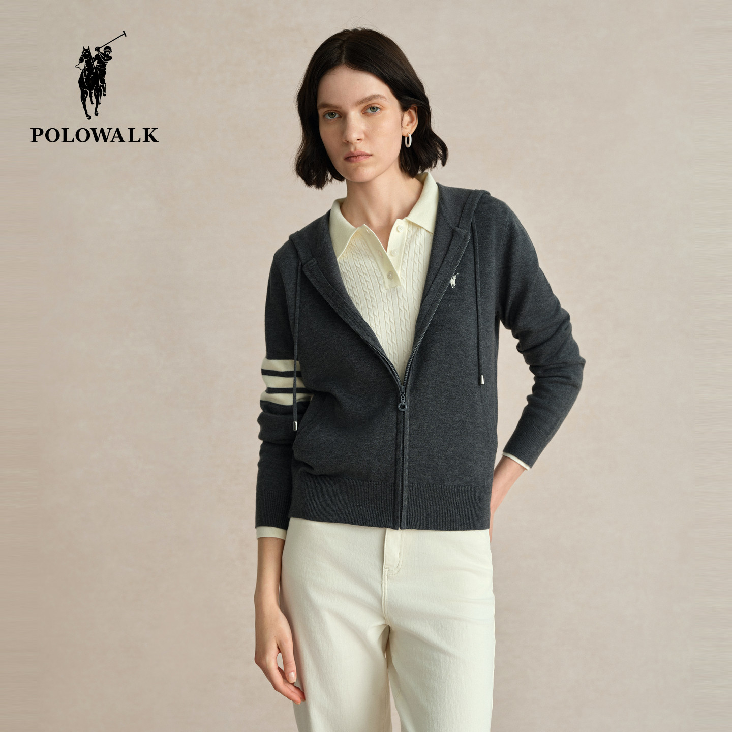 【特惠】POLOWALK针织开衫女春季新款连帽开衫复古外套针织衫