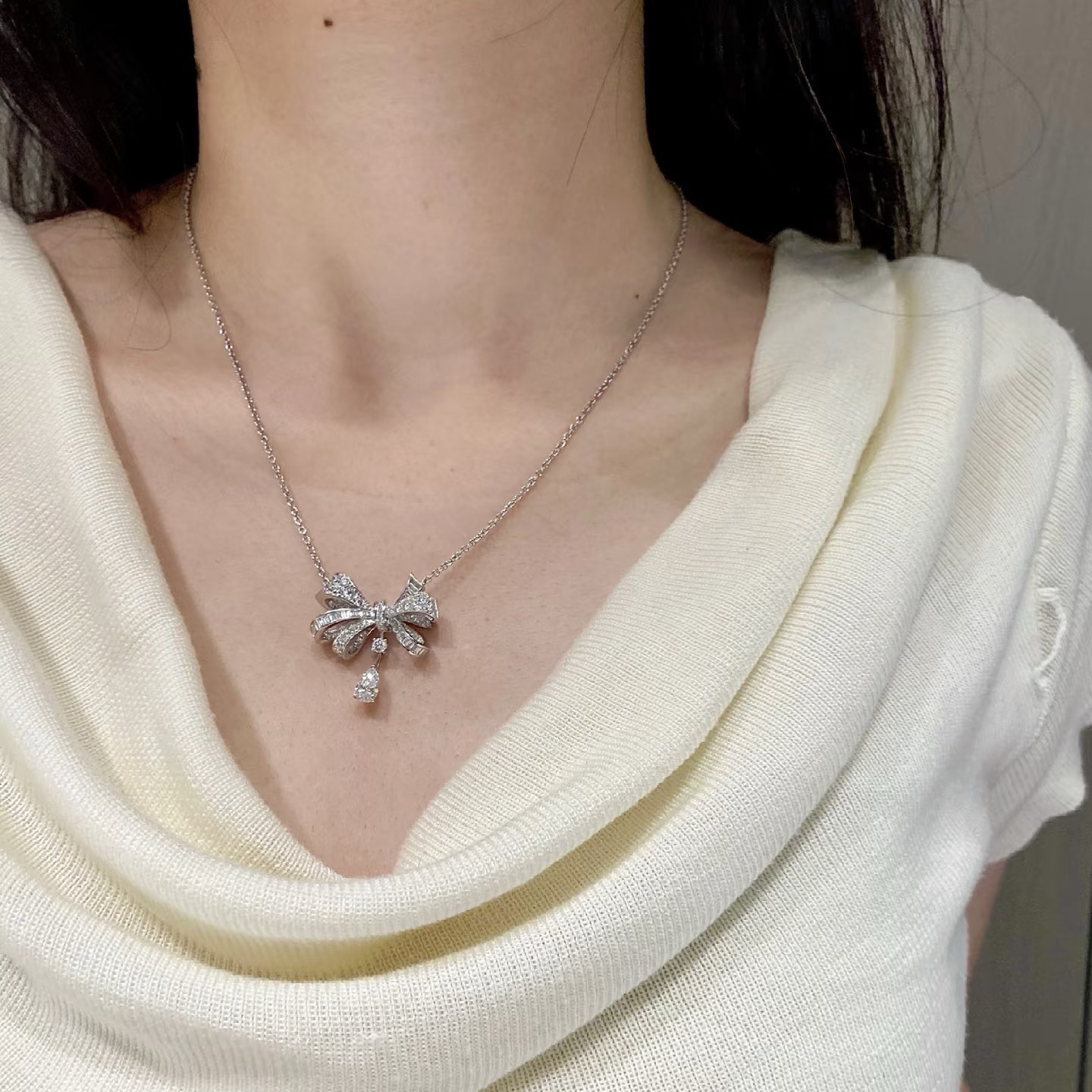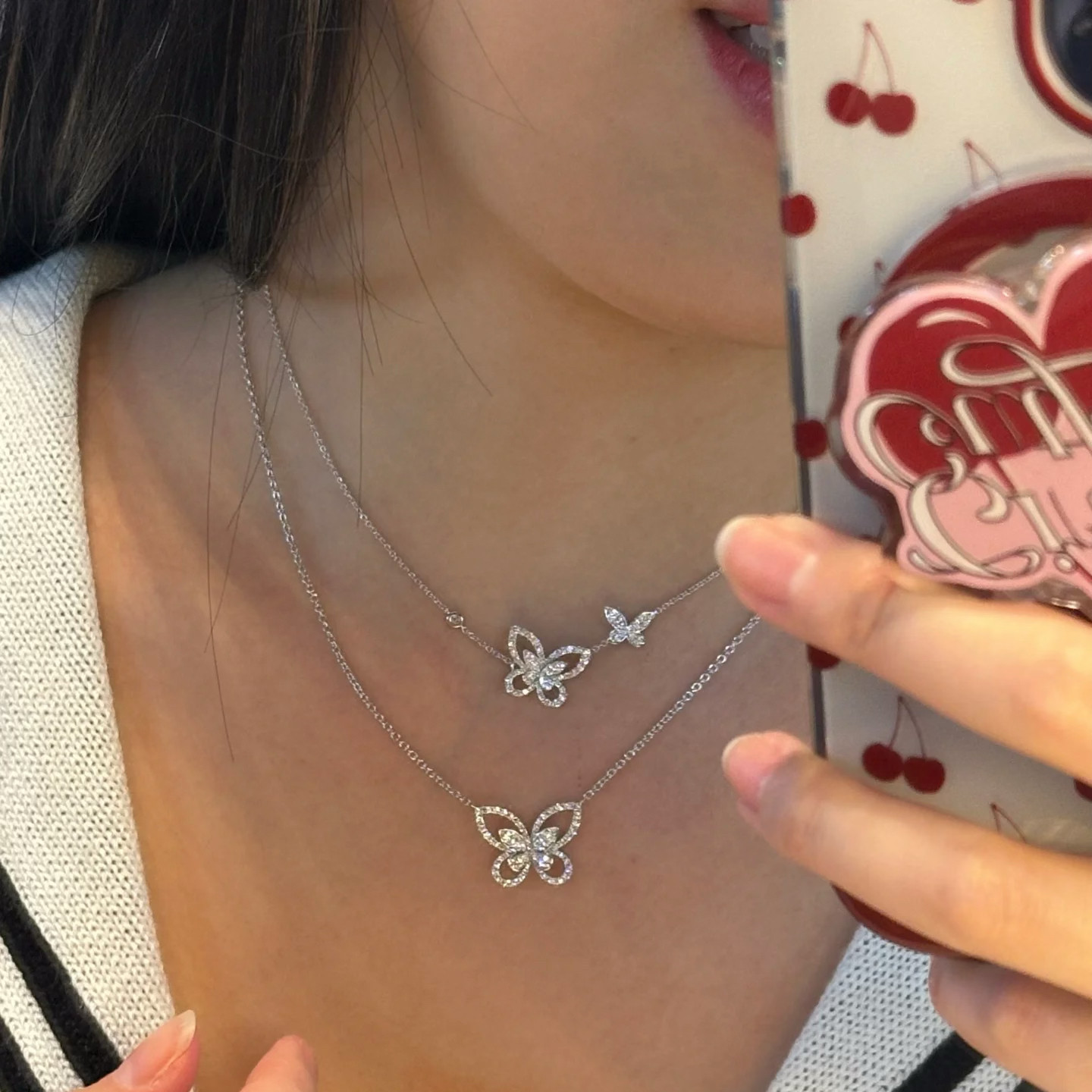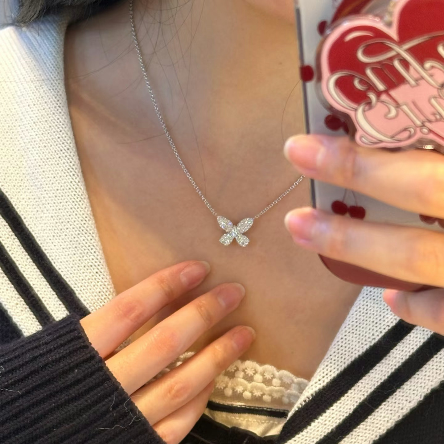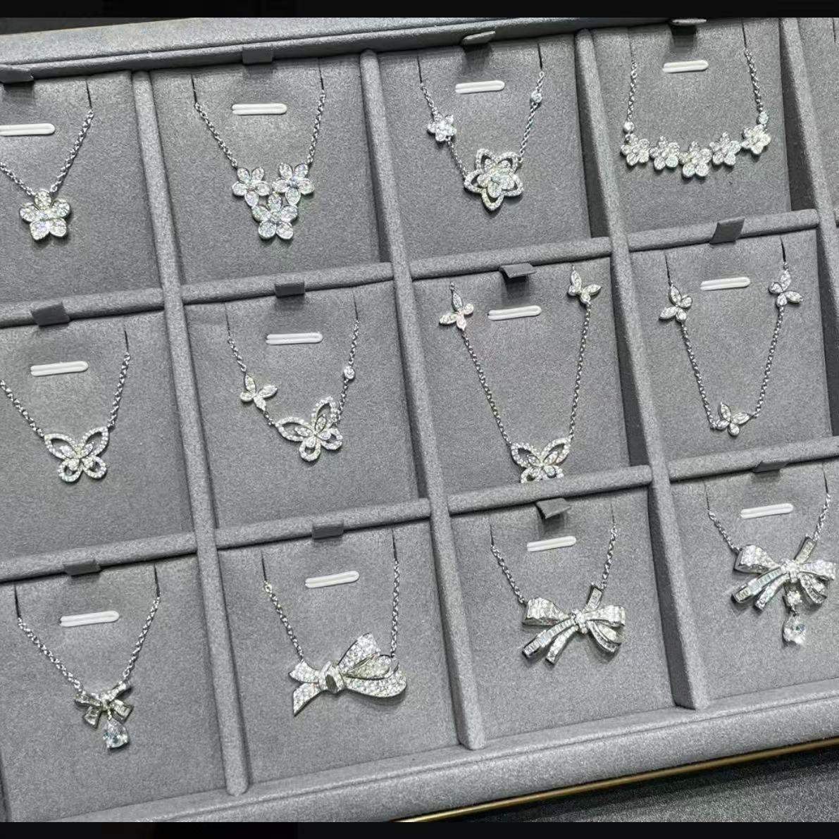 爆闪高定品质幻影满钻两只蝴蝶结项链女仿真钻石S925纯银