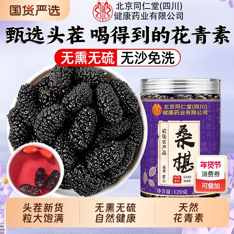 北京同仁堂桑葚干黑桑椹无熏泡水枸杞官方旗舰店魅格格bw泡酒新货