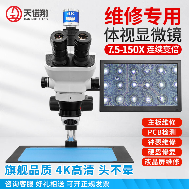 天诺翔手机维修显微镜焊接高清双目三目雕刻连续变焦7-45倍电子主板电路板检测解剖珠宝放大镜