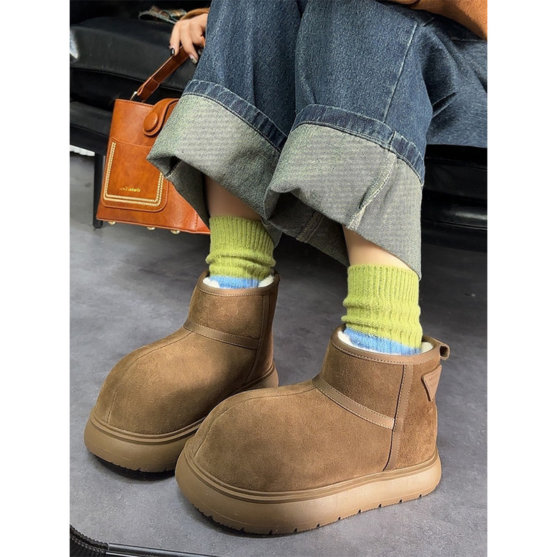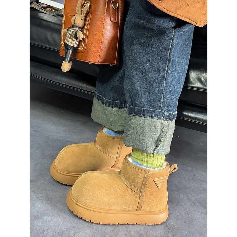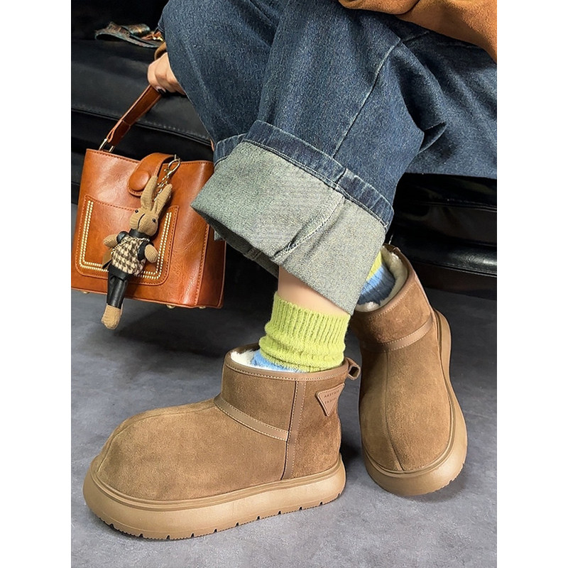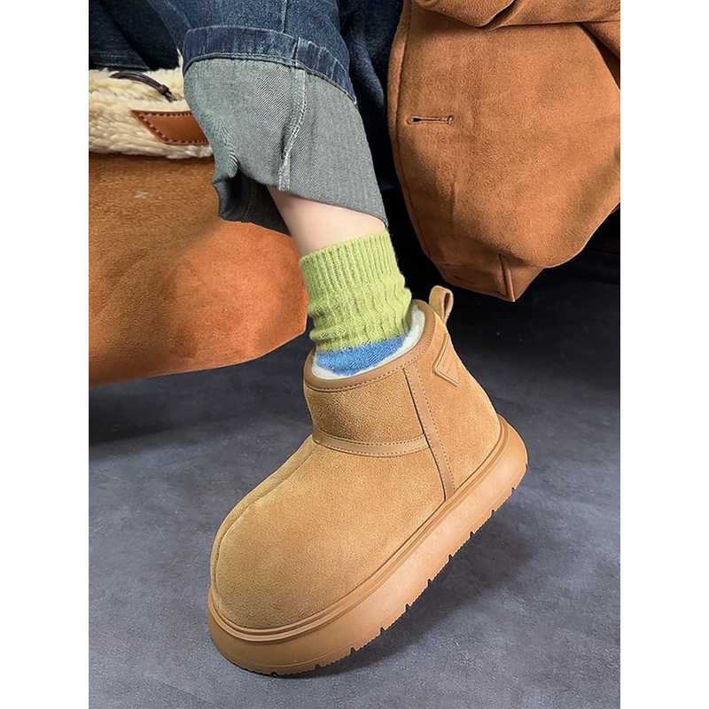 miu家厚底雪地靴女冬季真皮短靴羊毛侧拉链增高厚底加绒毛毛棉鞋
