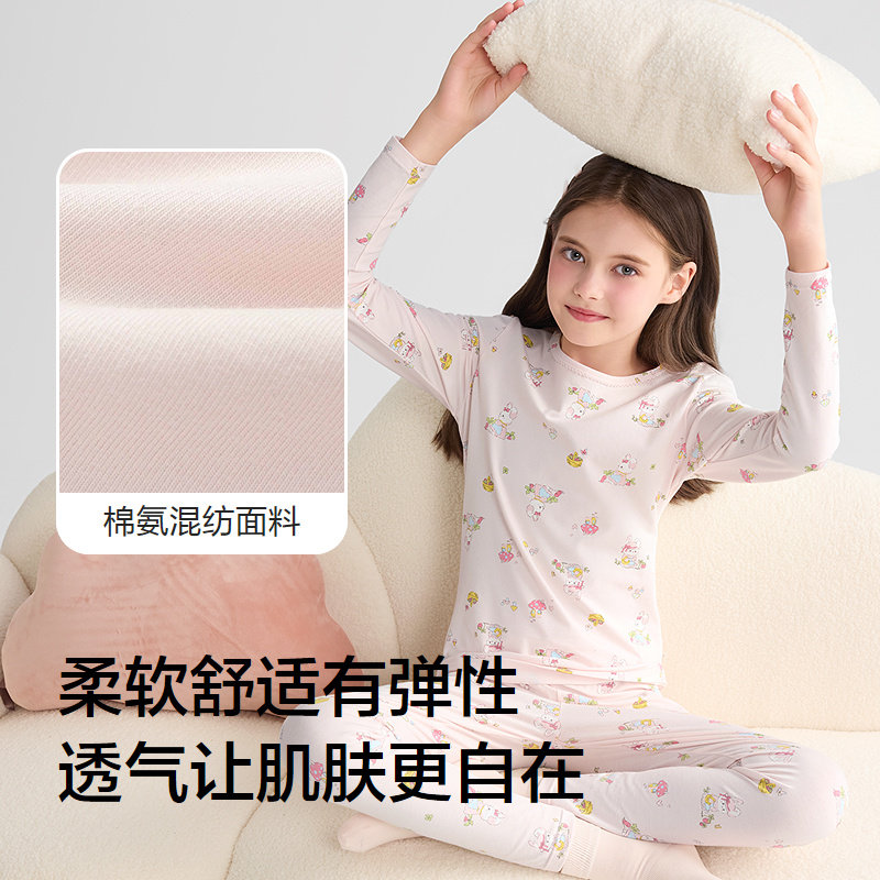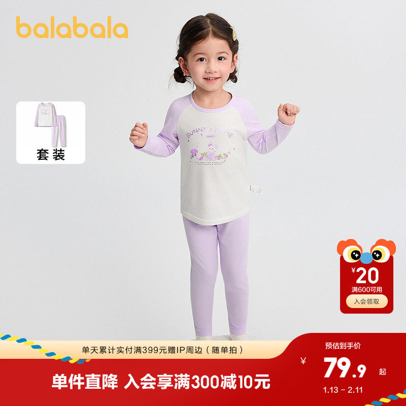 巴拉巴拉女童内衣套装棉春季新款薄小童打底棉毛衫宝宝中大童睡衣