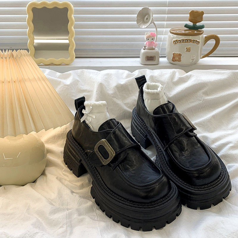 厚底粗高跟魔术贴小皮鞋女2026春秋新款复古jk英伦风圆头乐福单鞋