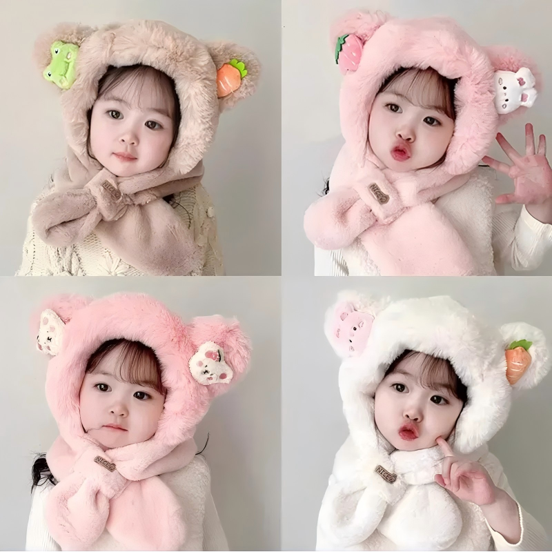 儿童冬季帽子围脖一体帽两件套婴儿可爱毛绒男女童宝宝保暖护耳厚
