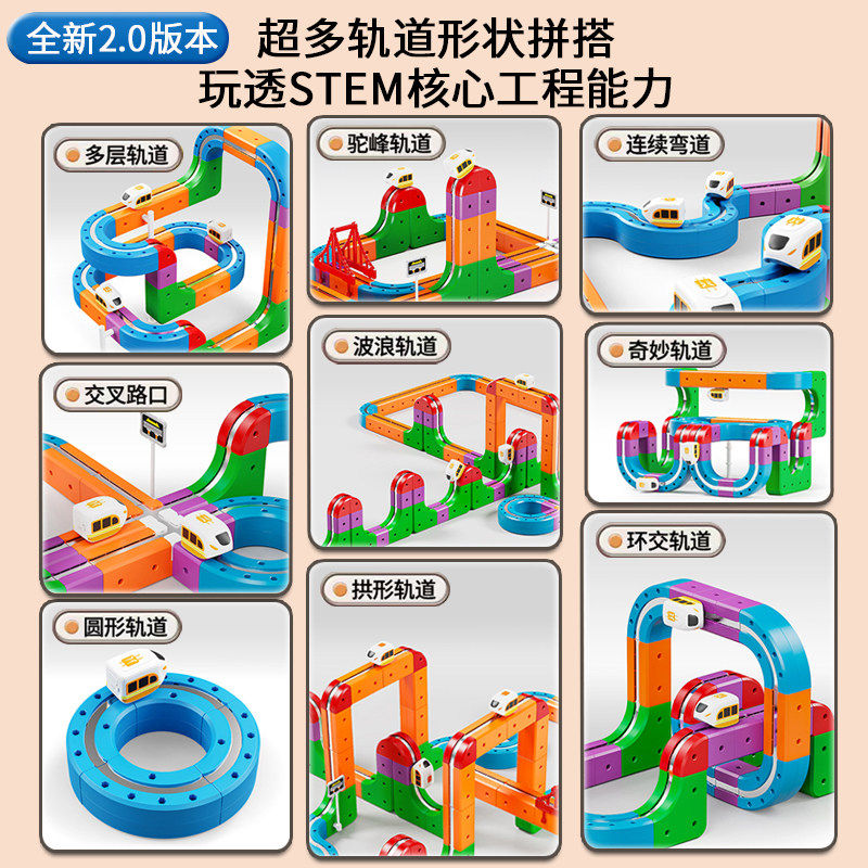 魔幻百变磁力轨道立方体儿童益智玩具高铁火车DIY积木男女孩礼物3