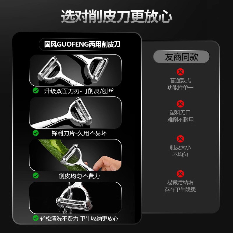 国风不锈钢多功能削皮刀厨房专用刮皮刀神器土豆刨丝水果蔬菜刨刀